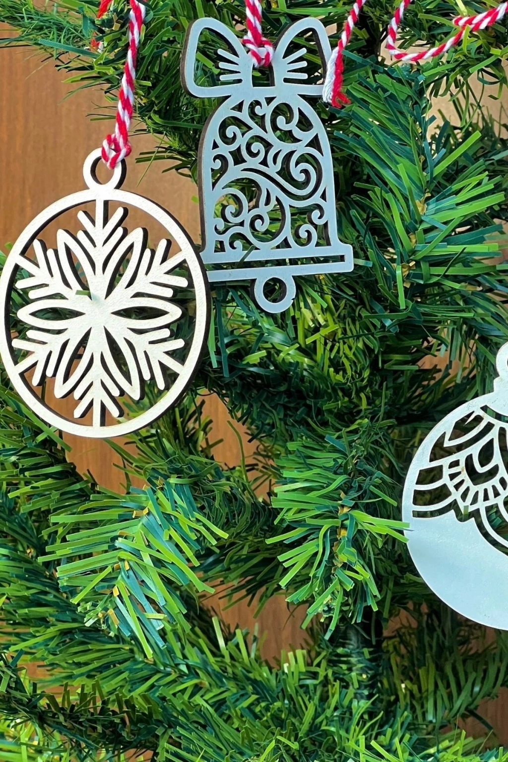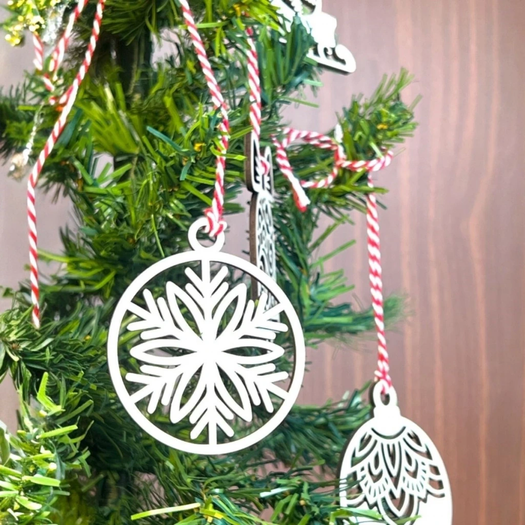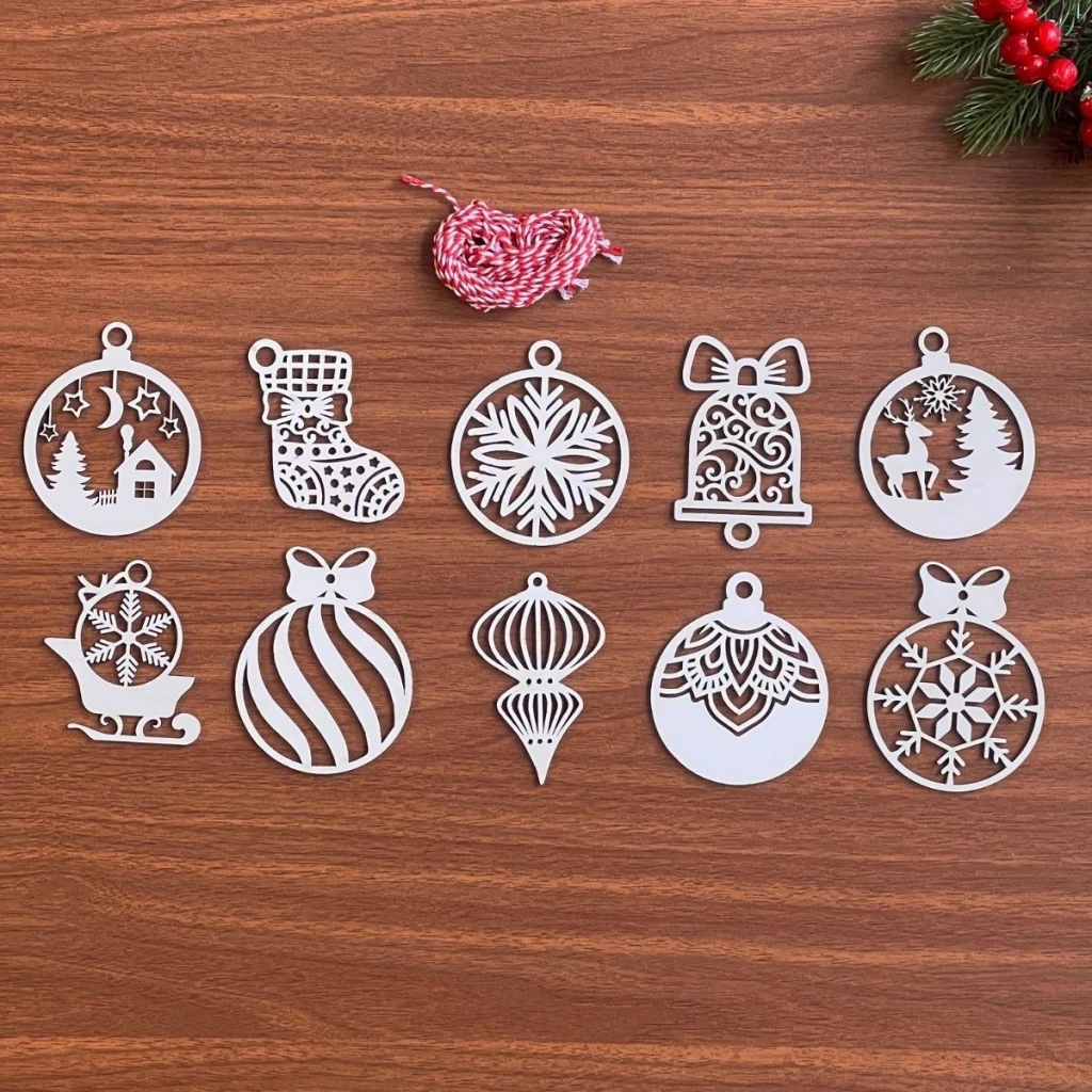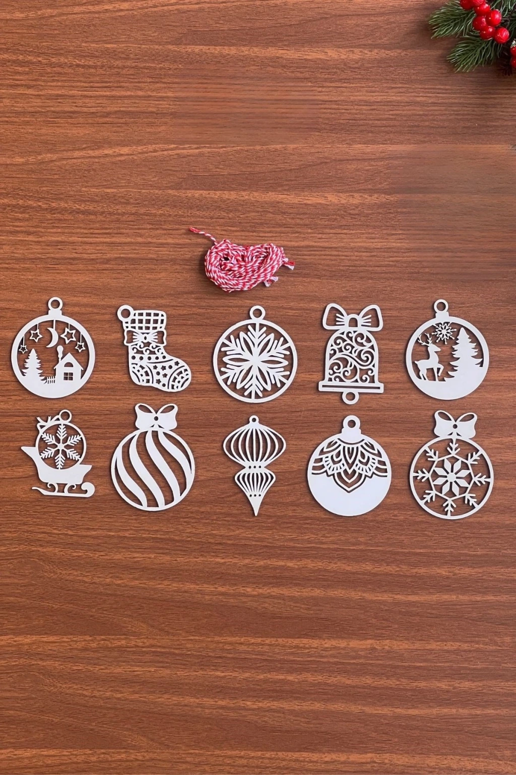 10 Parça Kırmızı Beyaz İpli Karışık Model Ahşap Yılbaşı Ağaç Süsü ?✨