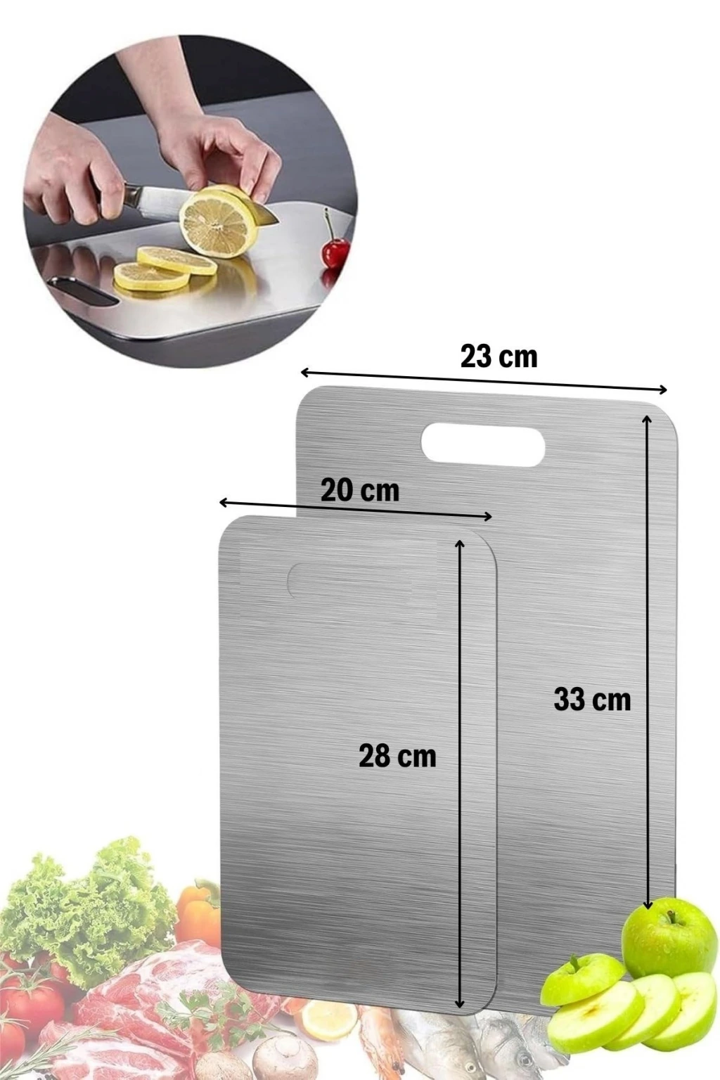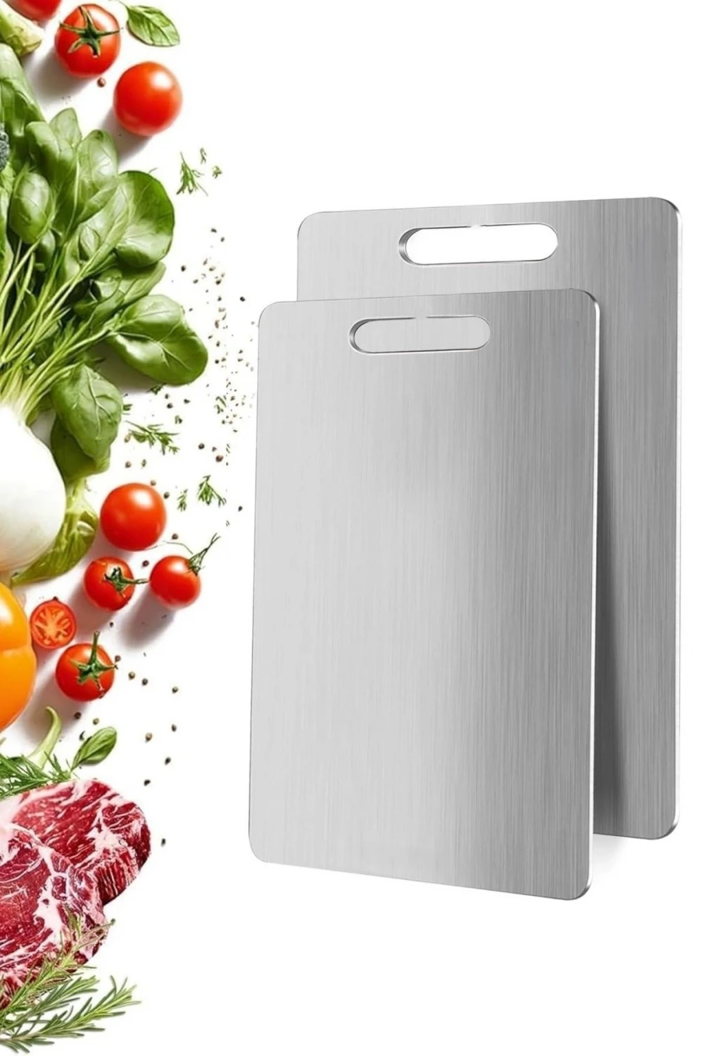 İpek Yıldızı® 2 Boy Paslanmaz Çelik Kesim Panosu – Leke Tutmaz, Kırılmaz, Antibakteriyel, Meyve, Sebze, Et ve Tavuk İçin Kullanım