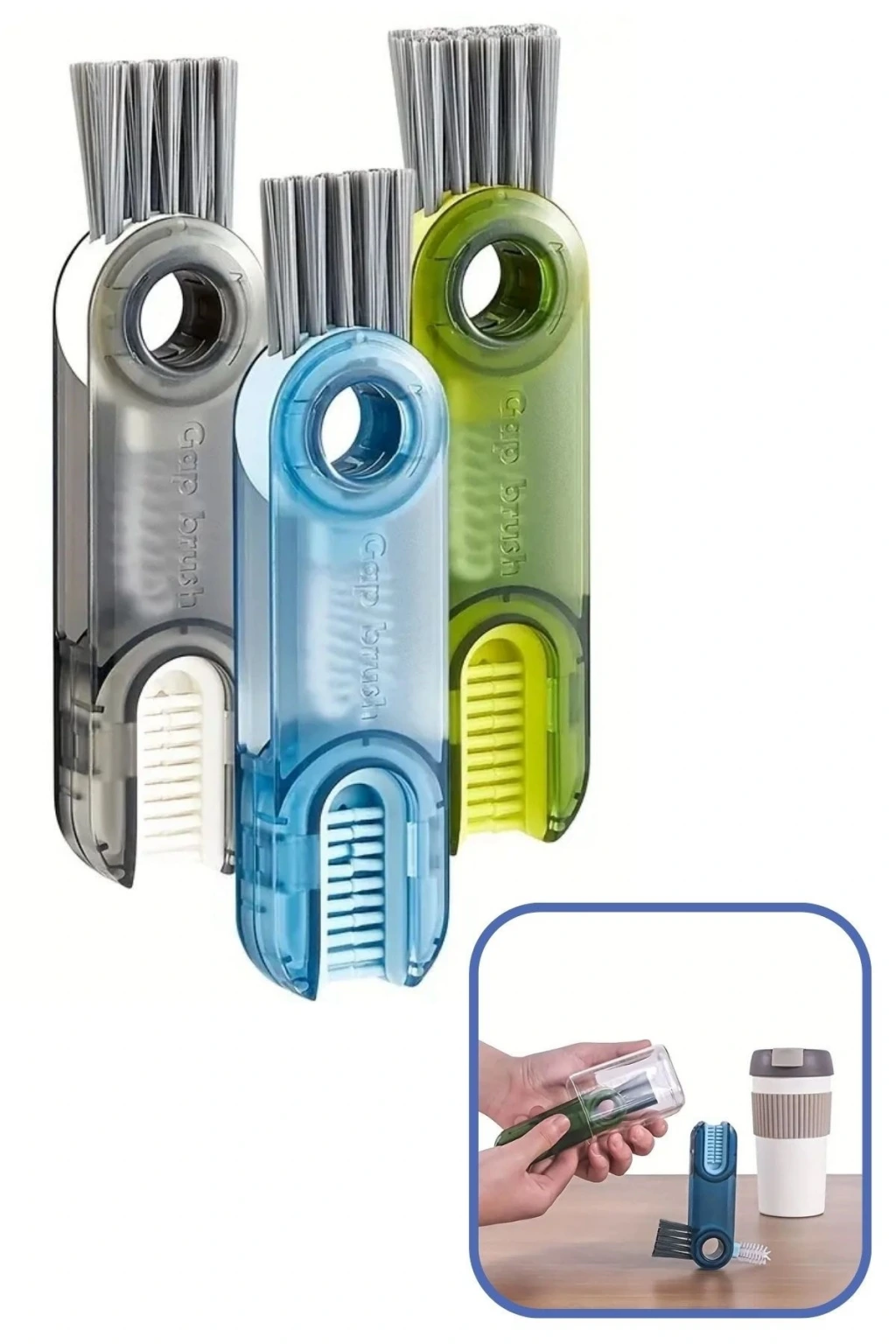 İpek Yıldızı® 3 Fonksiyonlu Pratik Şişe Temizleme Fırçası Mutfak Banyo Araç Klavye Pencere Oluklar İçin Çok Amaçlı Fırça