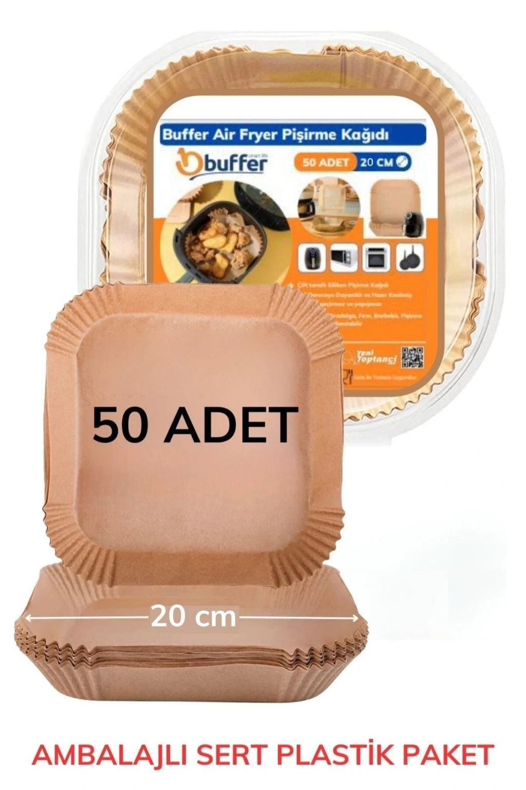 İpek Yıldızı® 50 Adet Air Fryer Pişirme Kağıdı Tek Kullanımlık Hava Fritöz Yağ Geçirmez Yapışmaz Kare Tabak Model PVC