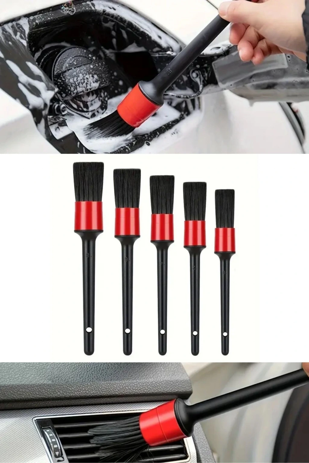 Yumuşak ama dayanıklı kılları, yüzeyleri çizmeyecek şekilde tasarlanmıştır. Gösterge paneli, havalandırma ızgaraları, jantlar, kapı içleri, amblemler ve motor bölmesi gibi detaylı temizlik gerektiren her noktada güvenle kullanabilirsiniz.