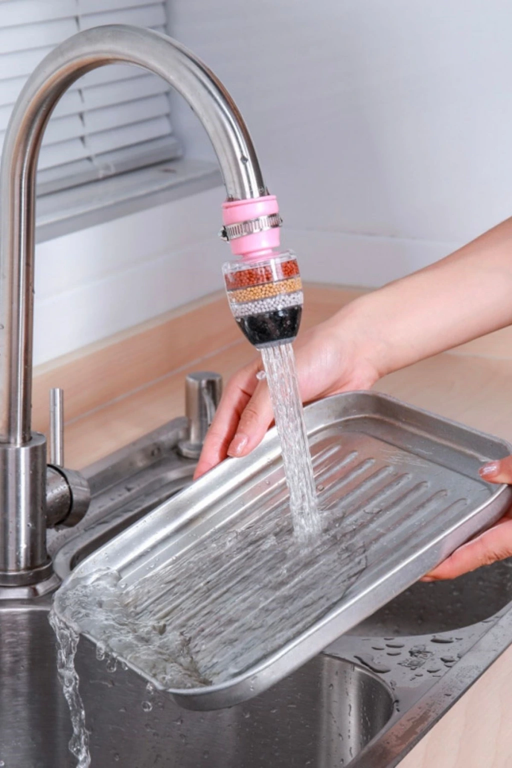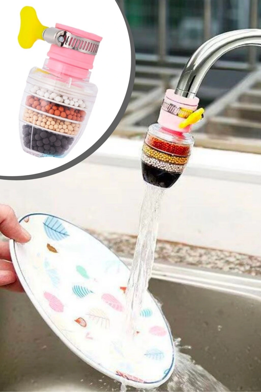Bu 6 Katmanlı Musluk Ucu Filtreli Su Tasarruflu Hijjenik Musluk Başlığı, mutfak ve banyo musluklarınızı daha temiz ve tasarruflu hale getirirken suyunuzu filtreleyerek daha sağlıklı bir kullanım sunar.