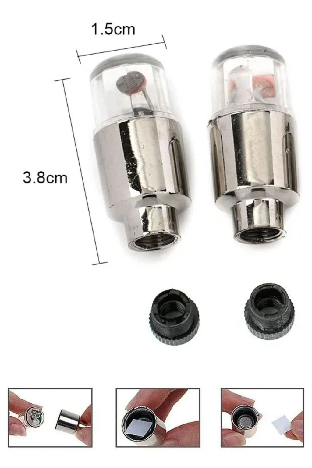 İpek Yıldızı® LED Hava Valfi Işık Kapakları, lastik siboplarına kolayca takılarak hem dekoratif bir görünüm sağlar hem de gece karanlığında fark edilmenizi kolaylaştırır.