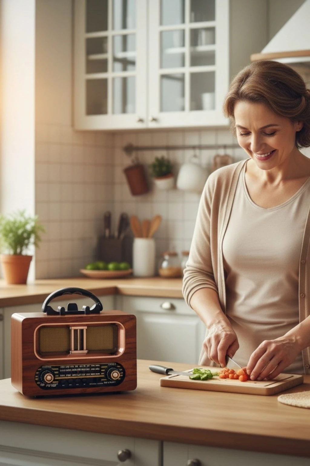 Retro ve Şık Tasarım: Ahşap detaylarıyla nostaljik bir görünüm sunar, hem dekoratif hem de işlevseldir.