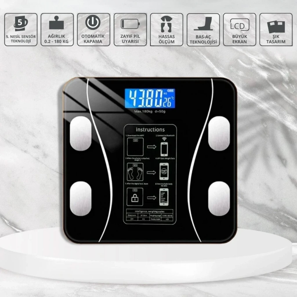 İpek Yıldızı® Dijital Baskül Yağ Ölçer Fonksiyonlu Akıllı Baskül – Bluetooth Bağlantılı Tartı