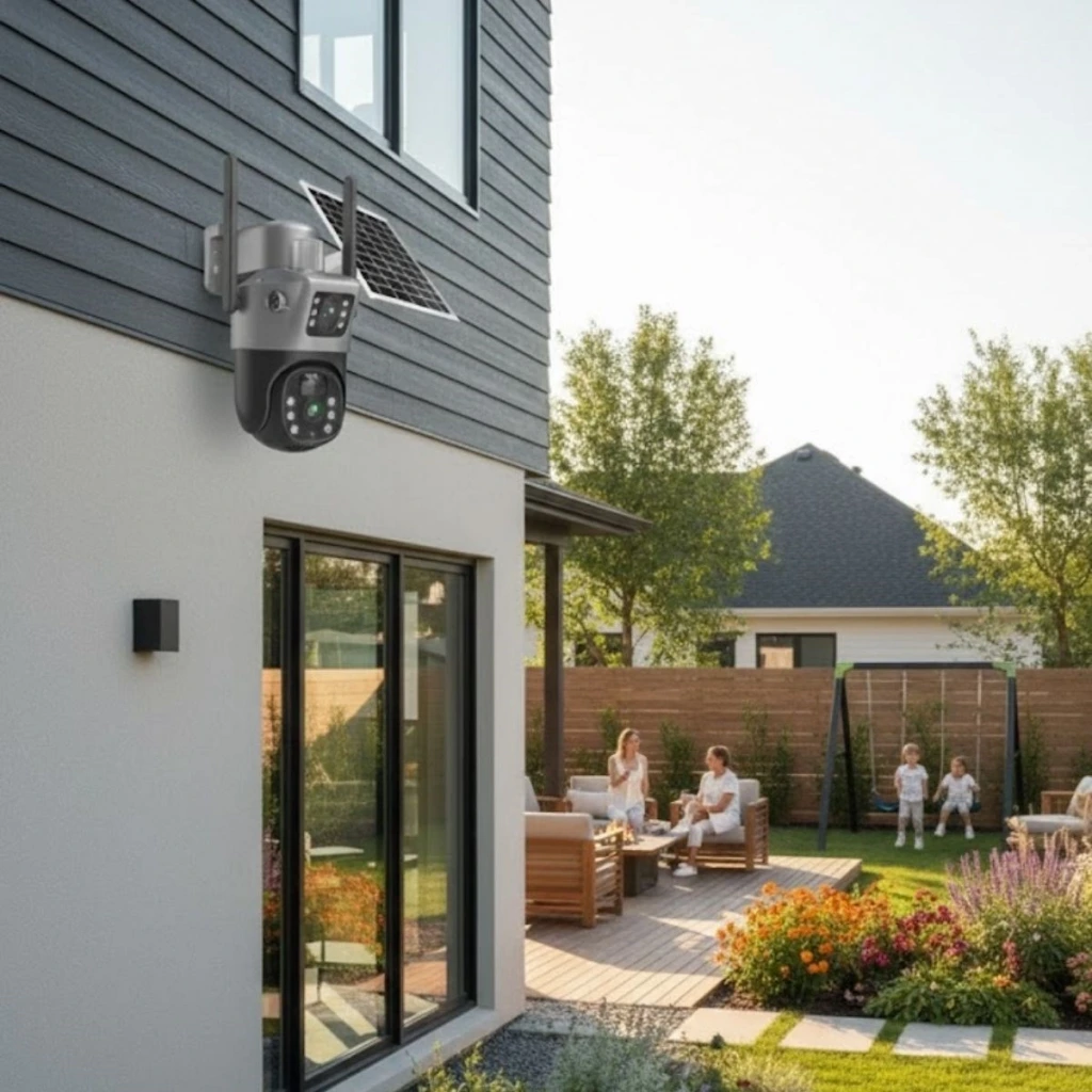 İpek Yıldızı® Güneş Panelli Akıllı Güvenlik Kamerası, elektrik bağlantısına ihtiyaç duymadan güneş enerjisiyle çalışan yapısı sayesinde dış mekân güvenliğini pratik ve ekonomik hale getirir. Solar paneli sayesinde gün boyu şarj olur, kablosuz WiFi bağlantısı ile her an her yerden canlı izleme imkânı sunar.