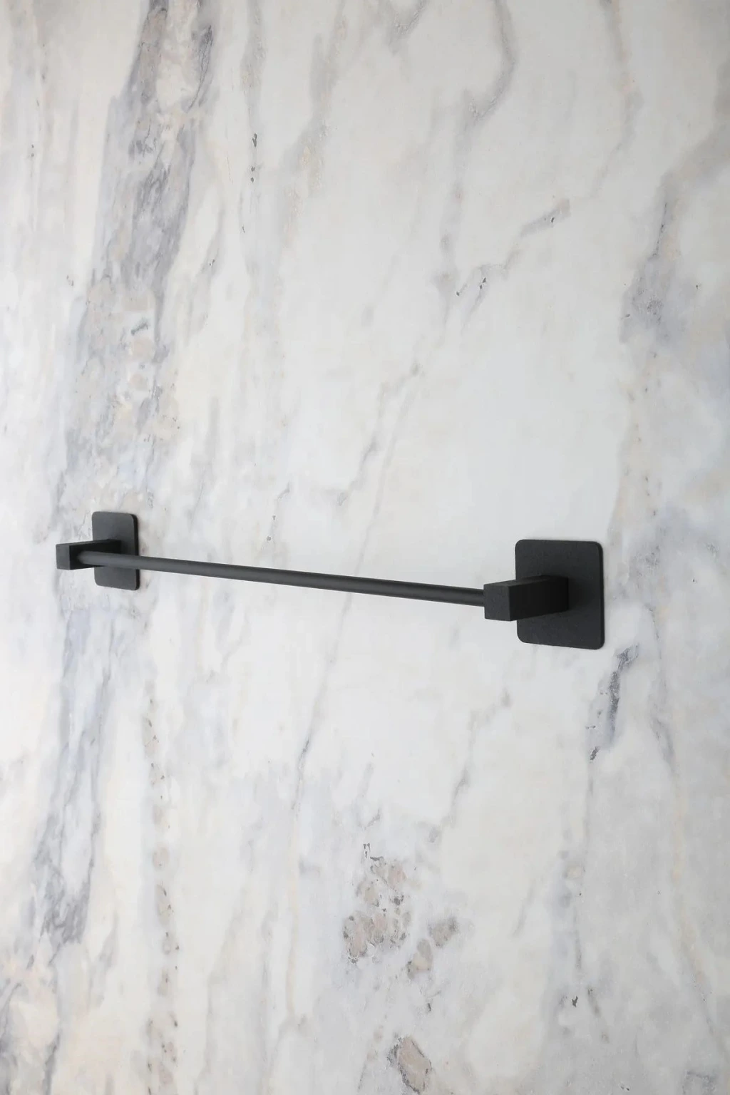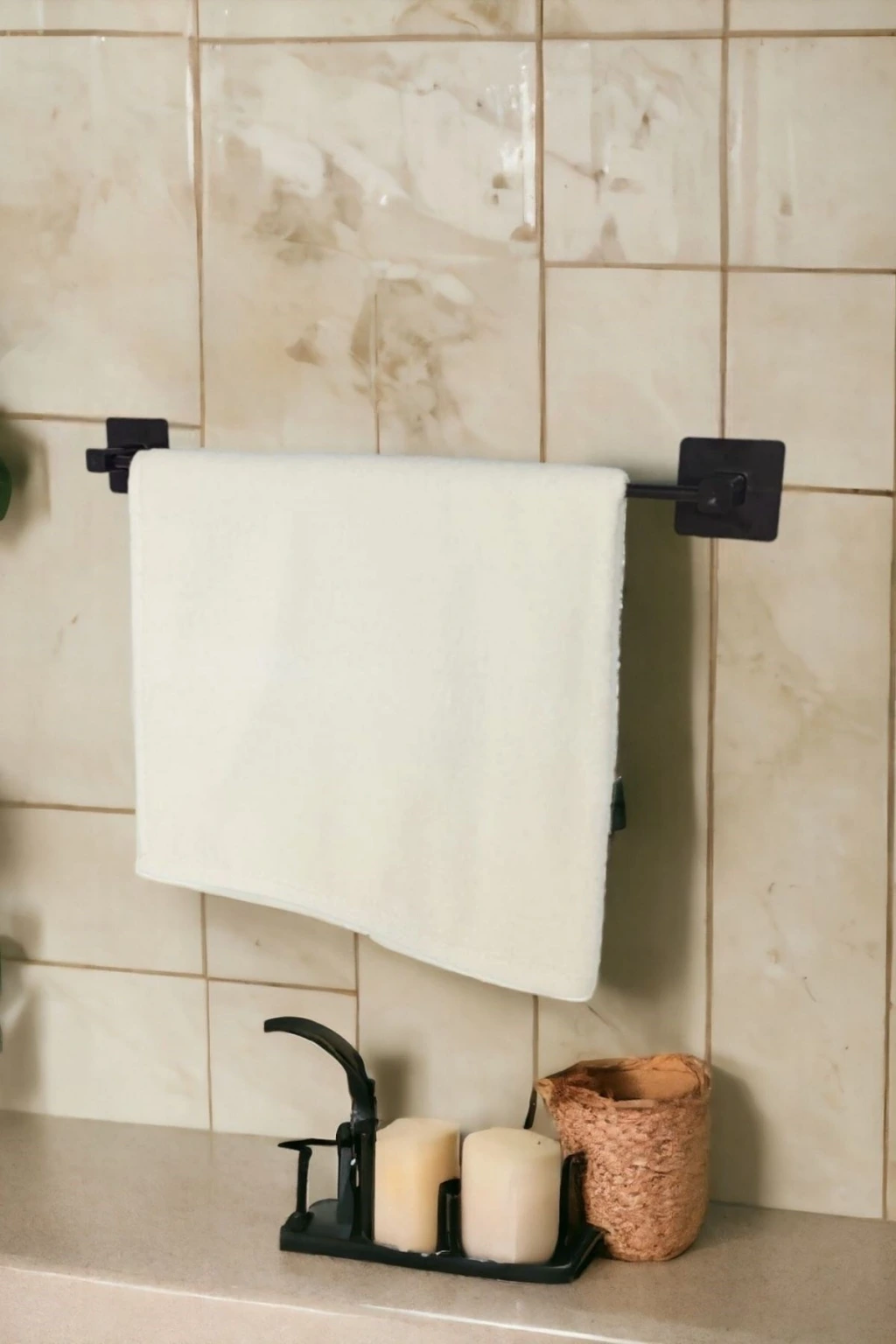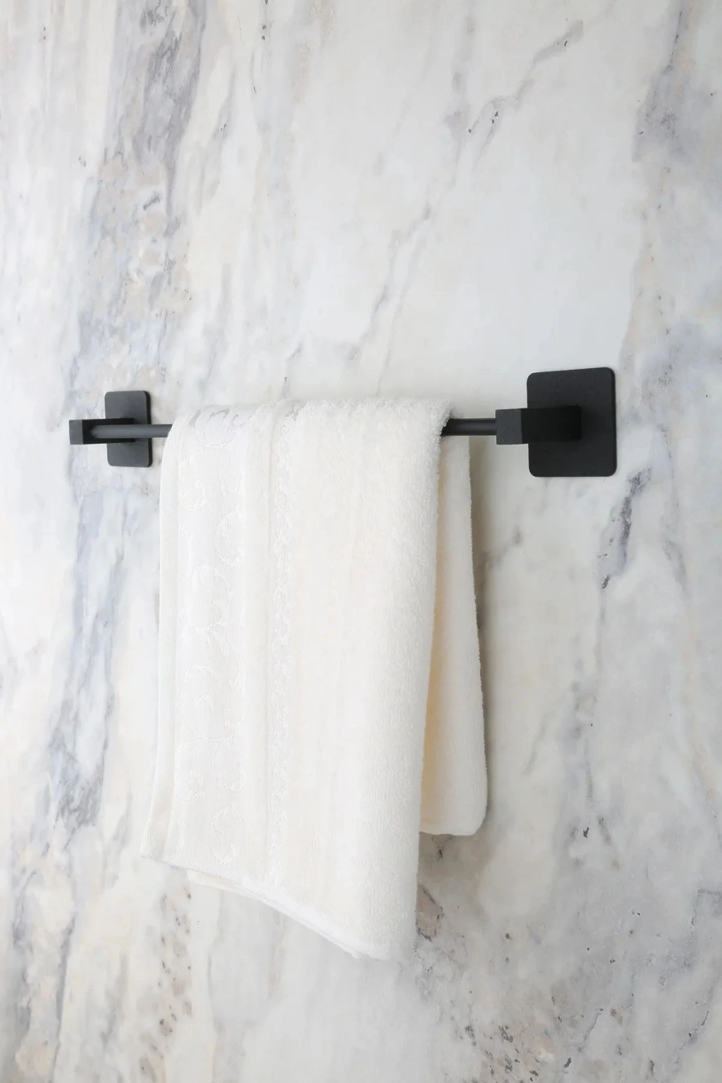 Kendiliğinden yapışkanlı siyah çubuk havluluk, şık ve pratik bir şekilde havlularınızı saklamanızı sağlar. Modern tasarımıyla dekorunuza uyum sağlar ve kullanıcılarına kolaylık sunar. Su ve nemden etkilenmeyen dayanıklı malzemesiyle uzun ömürlü bir kullanım vadediyor.