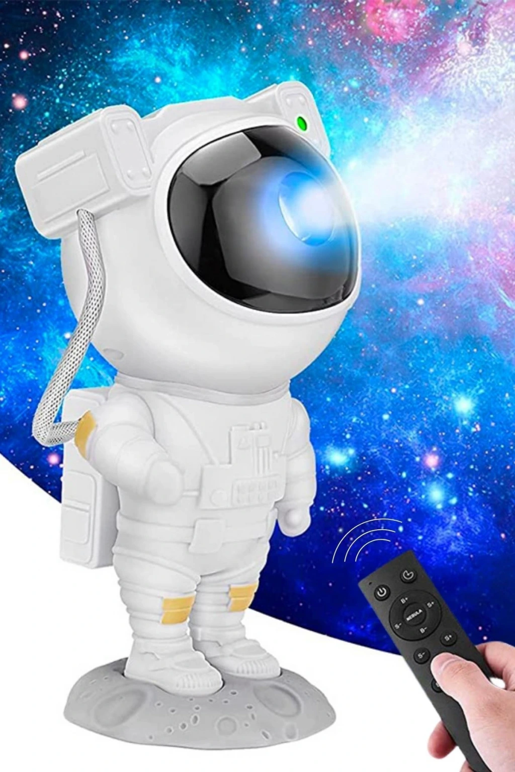 Bu Astranot Projektör Gece Lambası, çocukların odalarını rüya dolu bir atmosfere dönüştürürken aynı zamanda gece uyumalarına yardımcı olacak şekilde tasarlanmıştır.