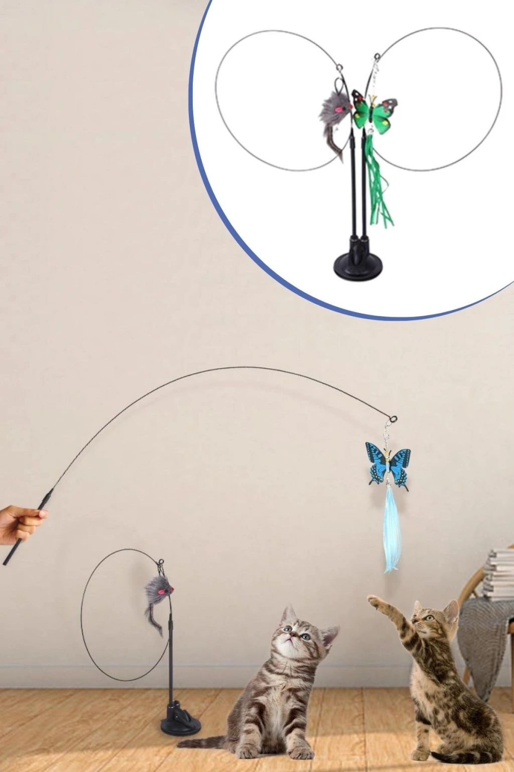Paket İçeriği: 1 Adet İpek Yıldızı® Vantuzlu Tüylü Zilli Olta Kedi Oyuncağı 2 Oltalı