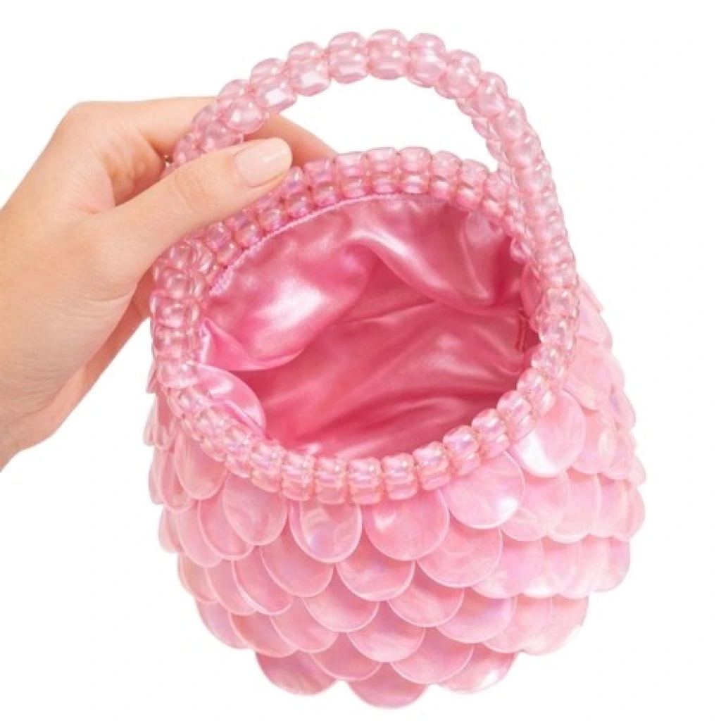 Çantanın dış yüzeyi, damla formunda hassas kesilmiş doğal sedef modüllerin, kontrollü bindirme (overlapping) tekniğiyle üç boyutlu bir kabuk mimarisi oluşturacak şekilde kurgulanmasıyla meydana gelir. Bu ölçekli katmanlama sistemi, yüzeyde ritmik bir akış sağlarken; ışığın farklı açılardan kırılmasını optimize eden yarı-organik bir doku üretir. Her bir sedef plaka, doğal malzemenin lif yönüne paralel biçimde işlenmiş olup, yüzey boyunca homojen bir parlaklık dağılımı elde edilmiştir.