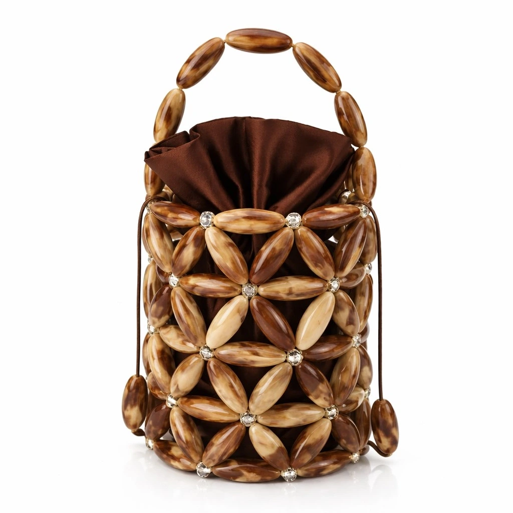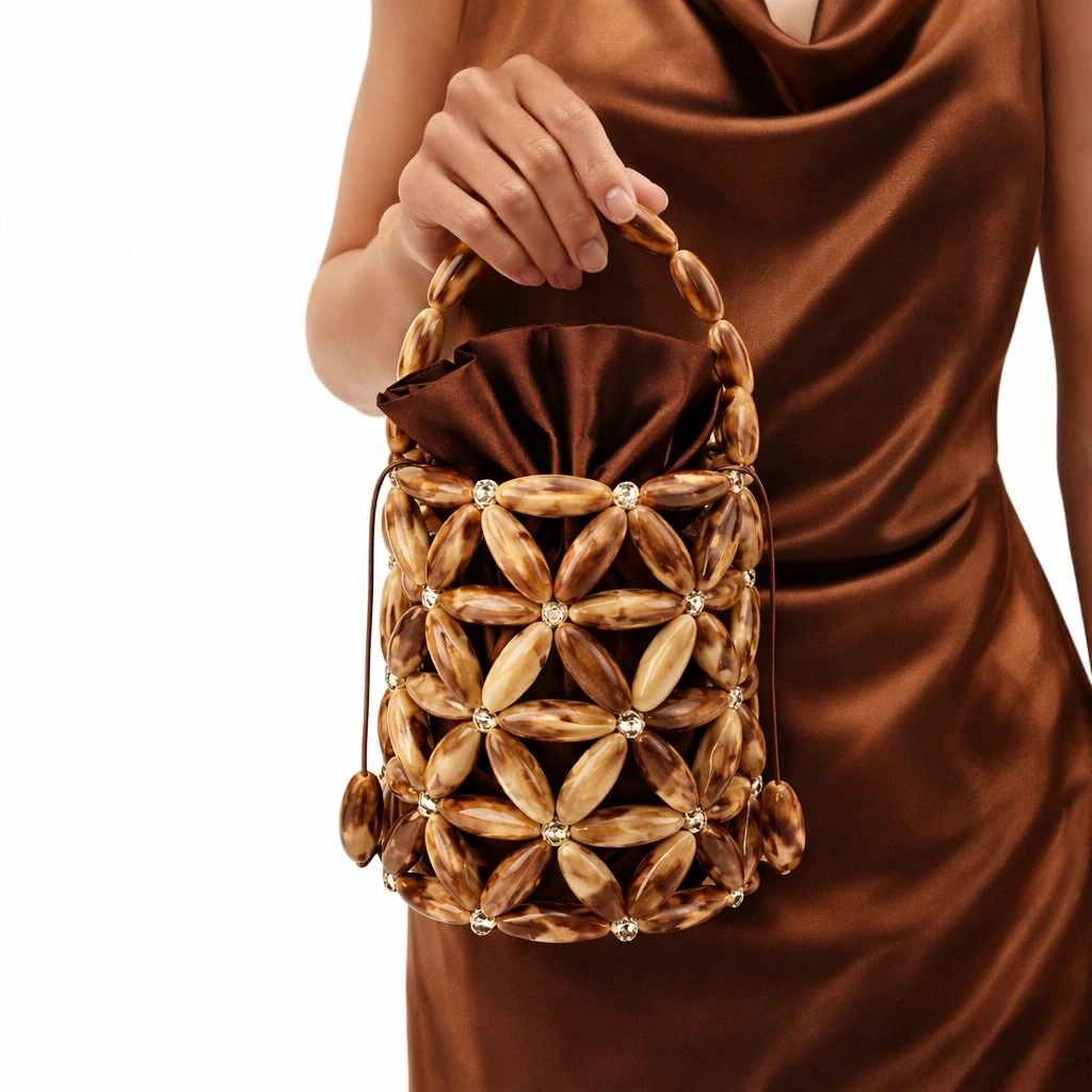 Atelier Emine’in Creamstone Couture serisine ait Jade Fawn, doğal sedef (mother-of-pearl) modüllerin, yüksek mukavemetli şeffaf misina (monofilament) sistemleri ile tek tek örülmesiyle üretilmiş; referans çanta kategorisinde konumlanan, ileri seviye el işçiliği ve mühendislik hassasiyeti gerektiren premium bir tasarımdır.