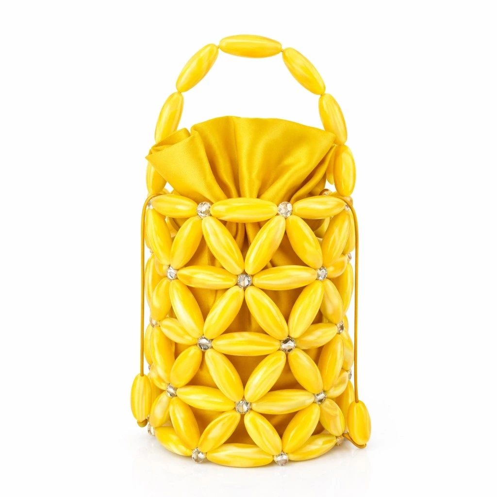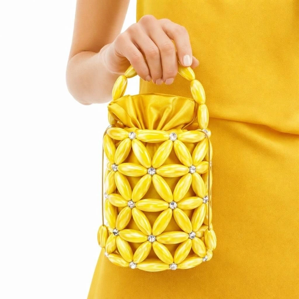 Atelier Emine’in Creamstone Couture serisine ait Jade Helios, doğal sedef (mother-of-pearl) modüllerin, yüksek mukavemetli şeffaf misina (monofilament) sistemleri ile tek tek örülmesiyle üretilmiş; referans çanta kategorisinde konumlanan, ileri seviye el işçiliği ve mühendislik hassasiyeti gerektiren premium bir tasarımdır.