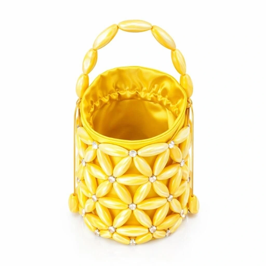 Oval formda hassas toleranslarla işlenmiş doğal sedef modüller, silindirik gövdeyi çevreleyen çok eksenli bir örgü mimarisi ile yapılandırılmıştır. Dikey ve yatay akslarda ilerleyen bu modüler ağ sistemi, çantaya hem yüksek yapısal stabilite hem de üç boyutlu yüzey derinliği kazandırır. Doğal sedefin kendine özgü katmanlı yapısı, yüzey boyunca homojen bir ışık kırılımı oluşturarak ürünün her açıdan dengeli, rafine ve zamansız algılanmasını sağlar.