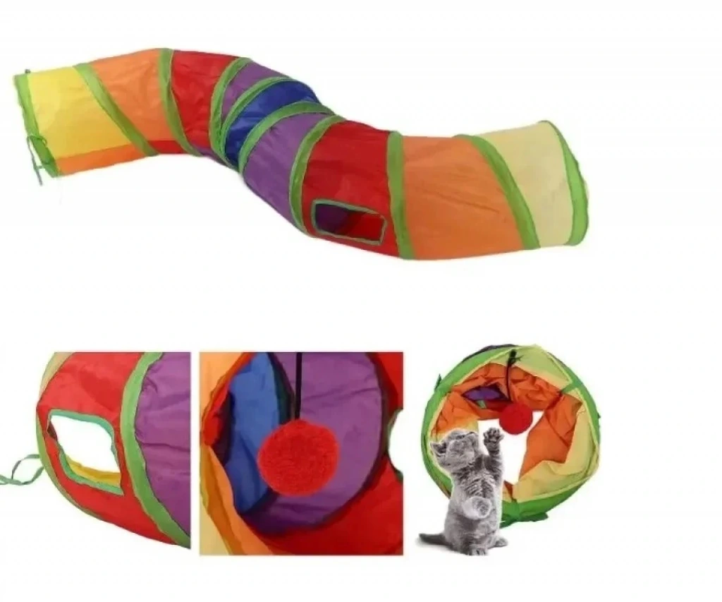 Kedilerin eğlenerek vakit geçirebileceği, naylon malzemeden yapılmış, açılması ve kapanması kolay, kedi oyun tüneli.