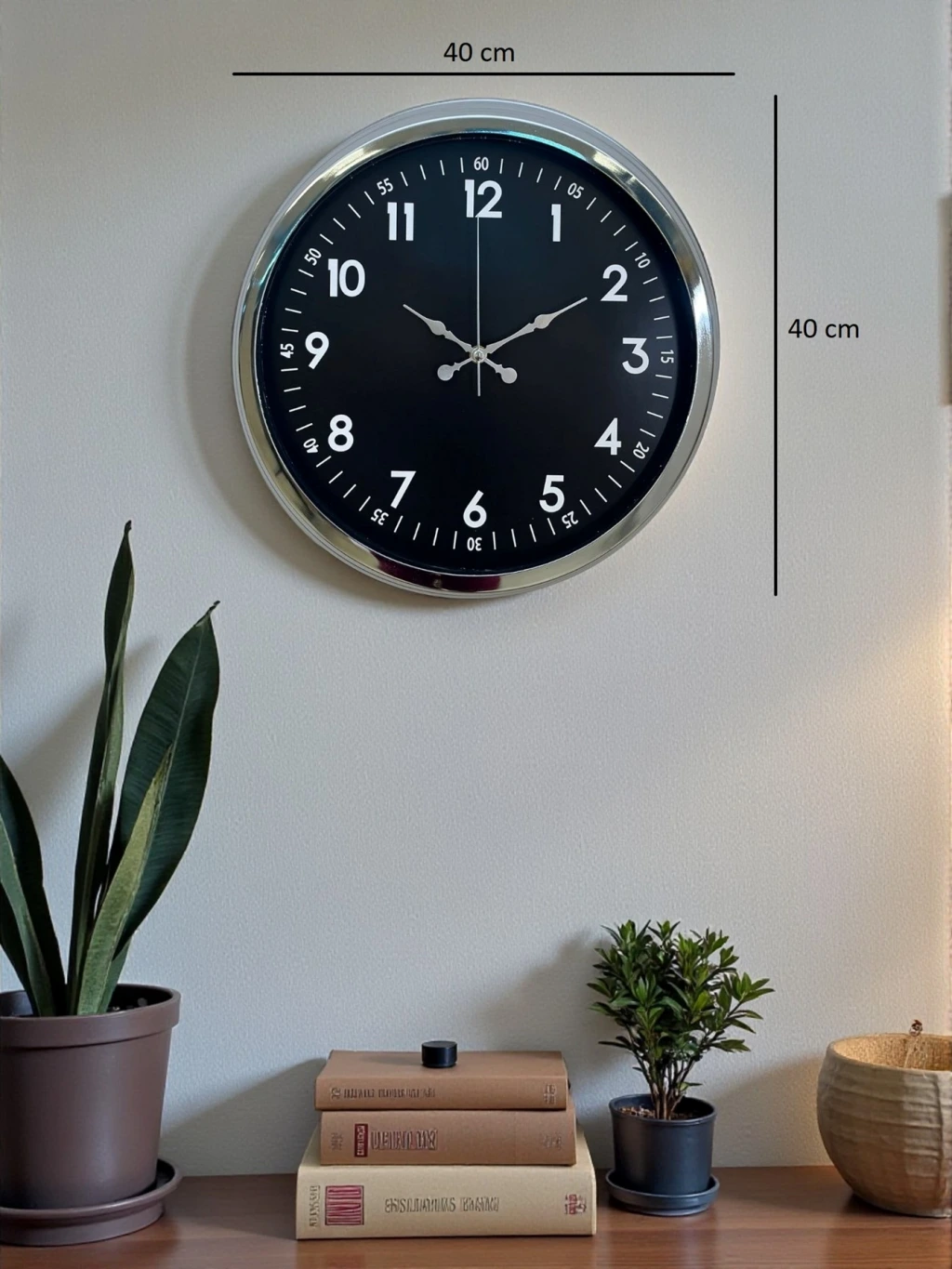 Şık ve güçlü tasarımıyla öne çıkan bu 40 cm krom metal duvar saati, yaşam alanlarınıza hem estetik hem de işlevsellik kazandırır. Parlak krom metal kasası, siyah kadran ile mükemmel bir kontrast oluşturur ve modern dekorasyonlara kolayca uyum sağlar.