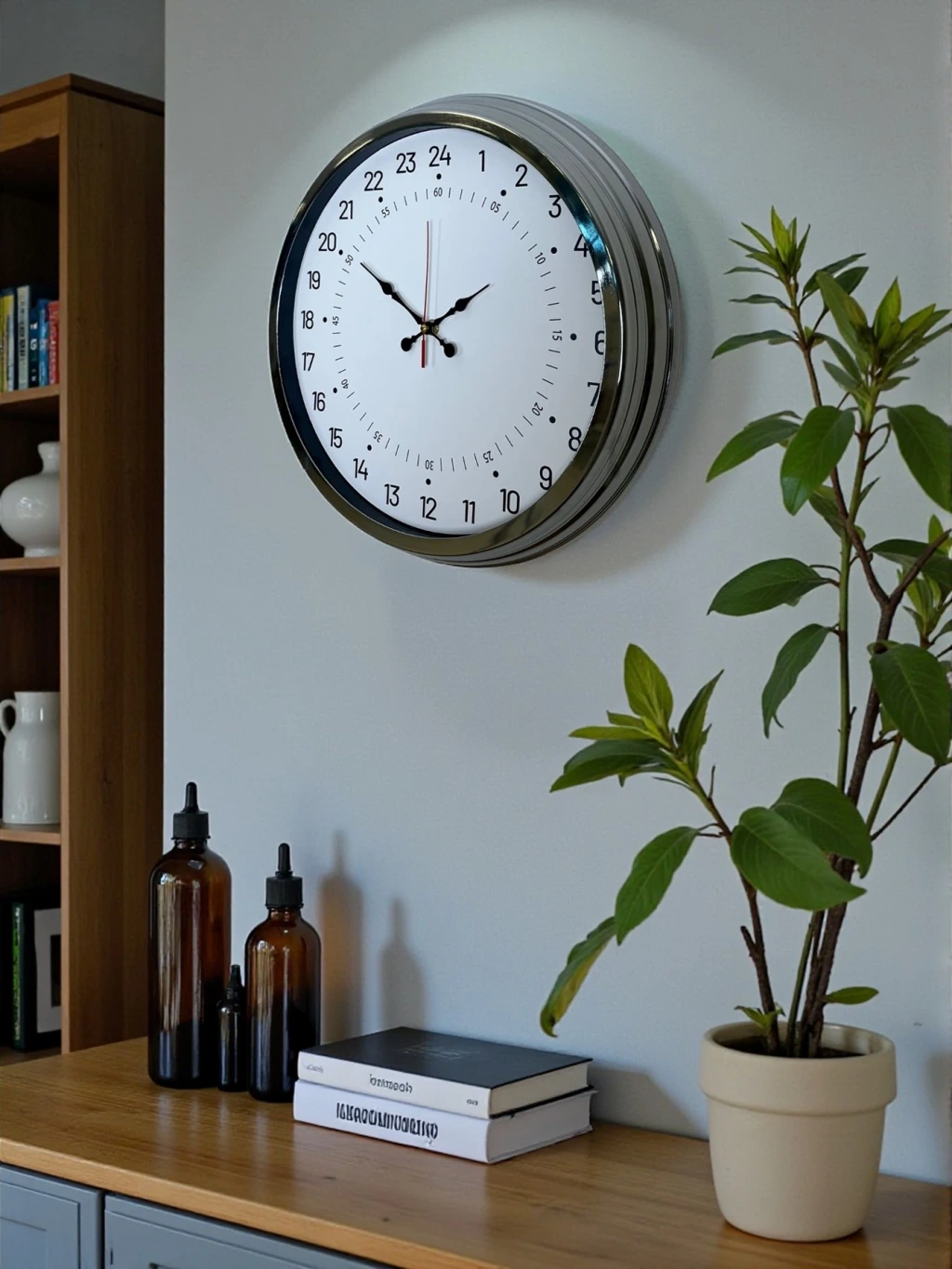 Bu duvar saati, alışılmış 12 saatlik kadran anlayışını tamamen geride bırakır.