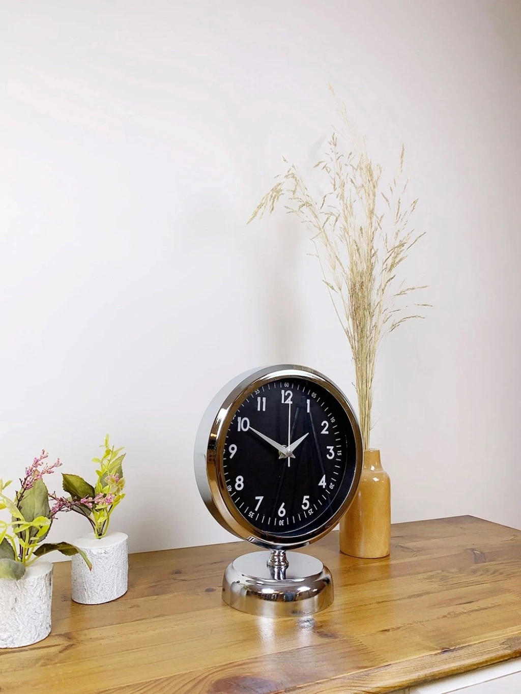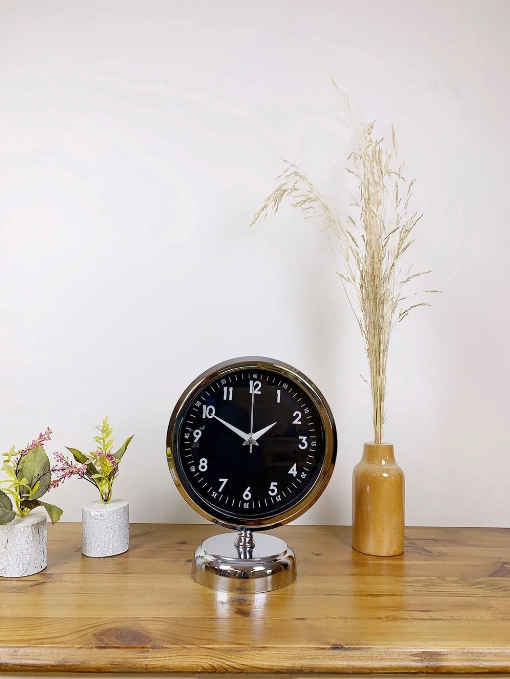Şık ve modern tasarımıyla dikkat çeken  krom kaplama masa saatimiz, sessiz akar saniye mekanizmasıyla konforlu bir kullanım sunar. Gerçek cam koruma paneli sayesinde uzun ömürlü ve dayanıklıdır. Estetik görünümüyle hem ev hem de iş yerleri için ideal bir dekoratif üründür.