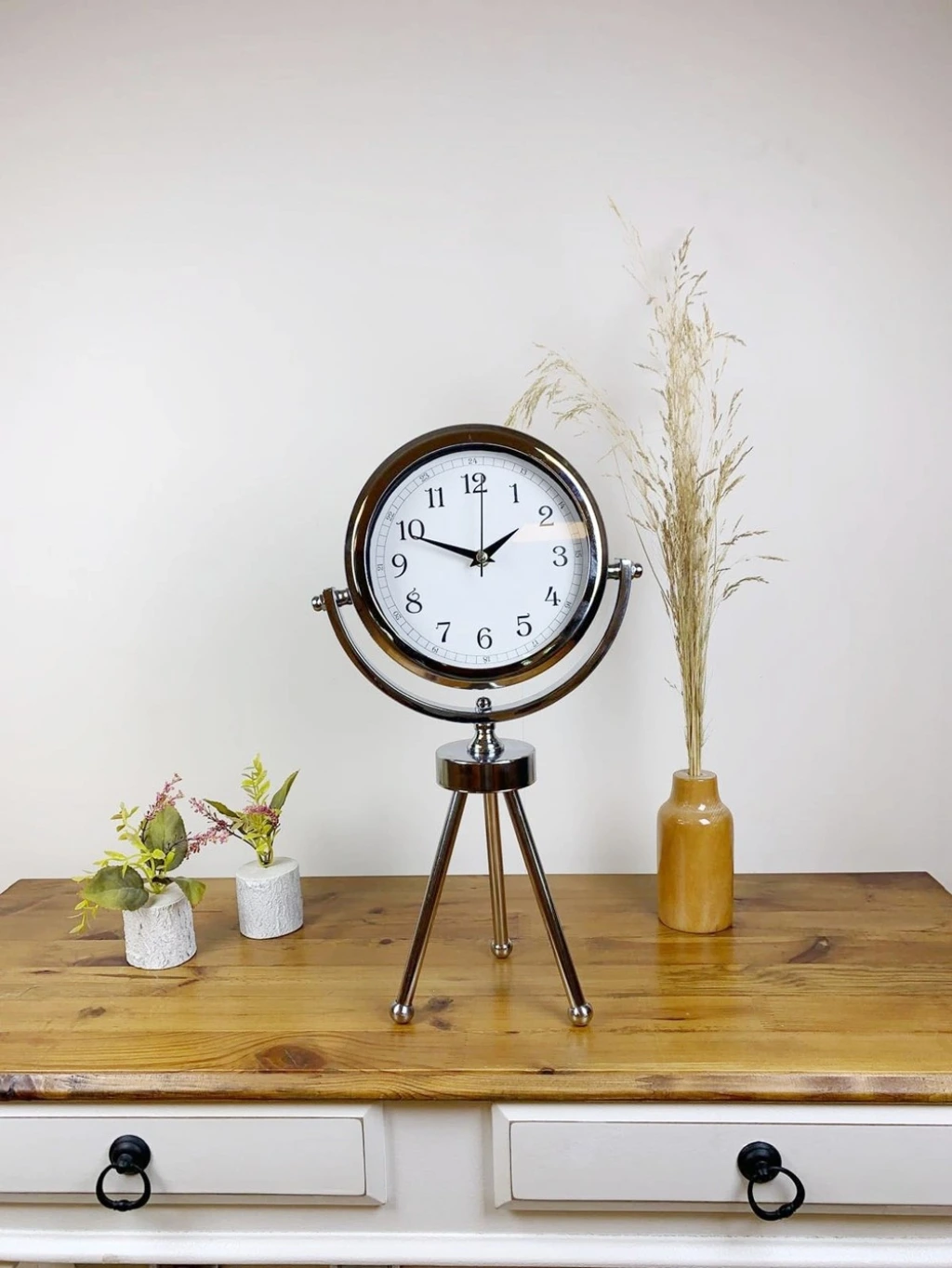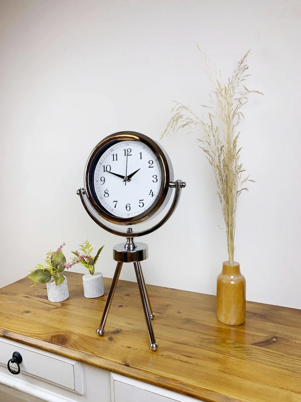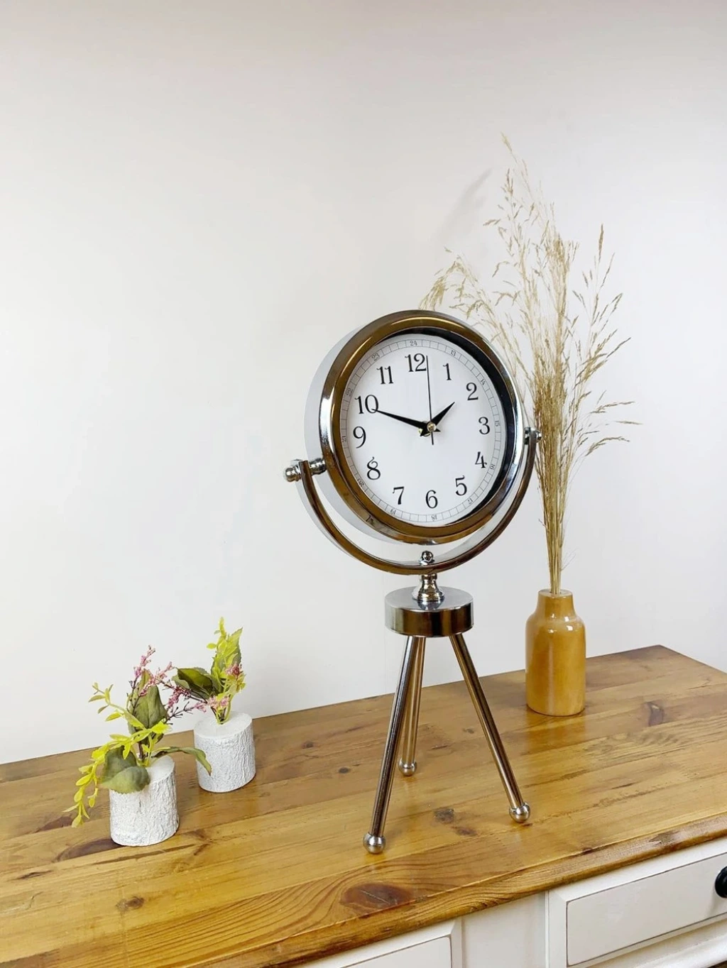 Krom Metal Mini Tripod Dekoratif Masa Saati 45×26 cm