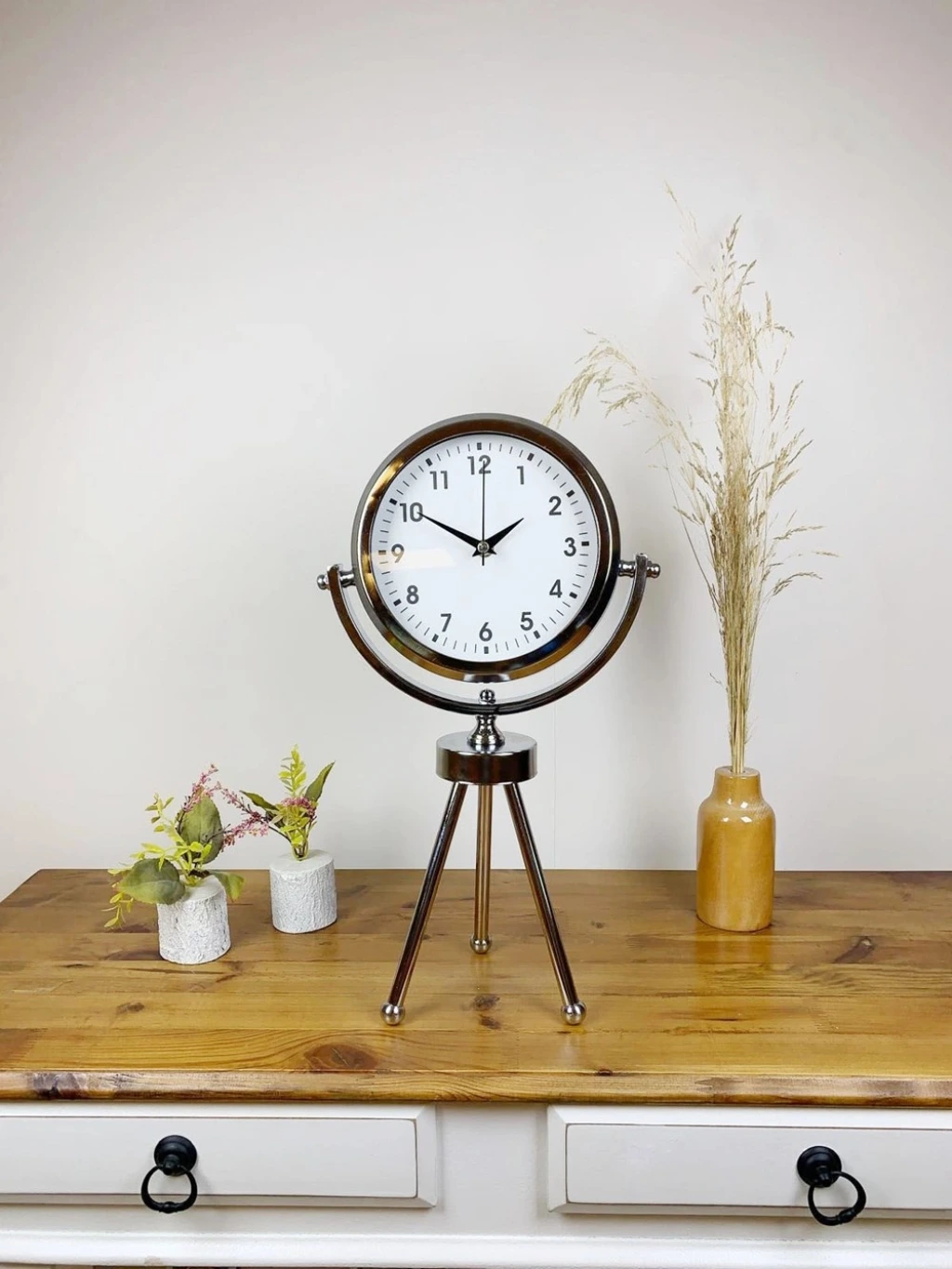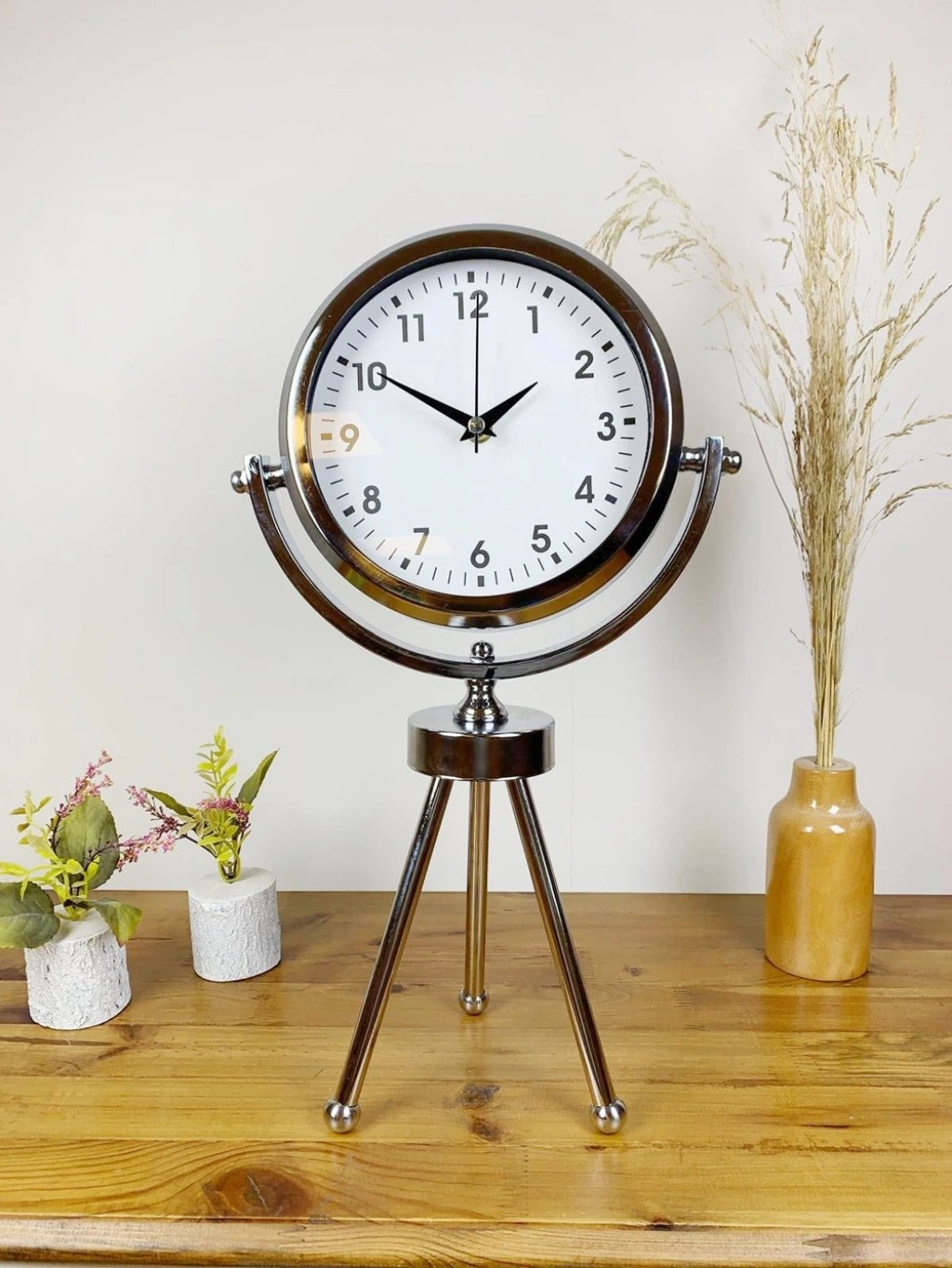 Krom Metal Mini Tripod Lüks Masa Saati 45×26 cm