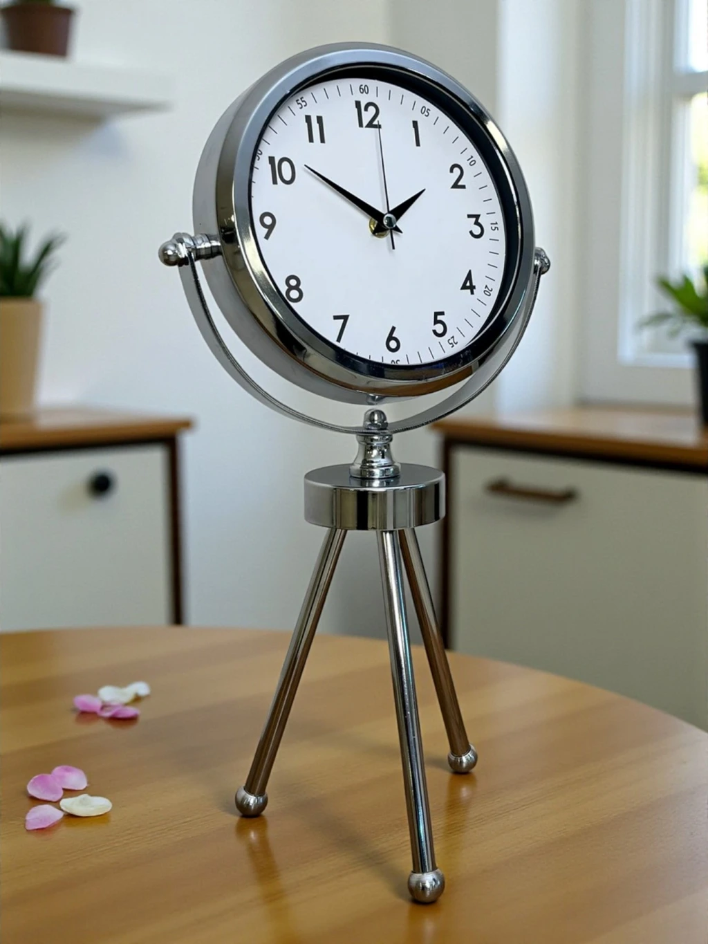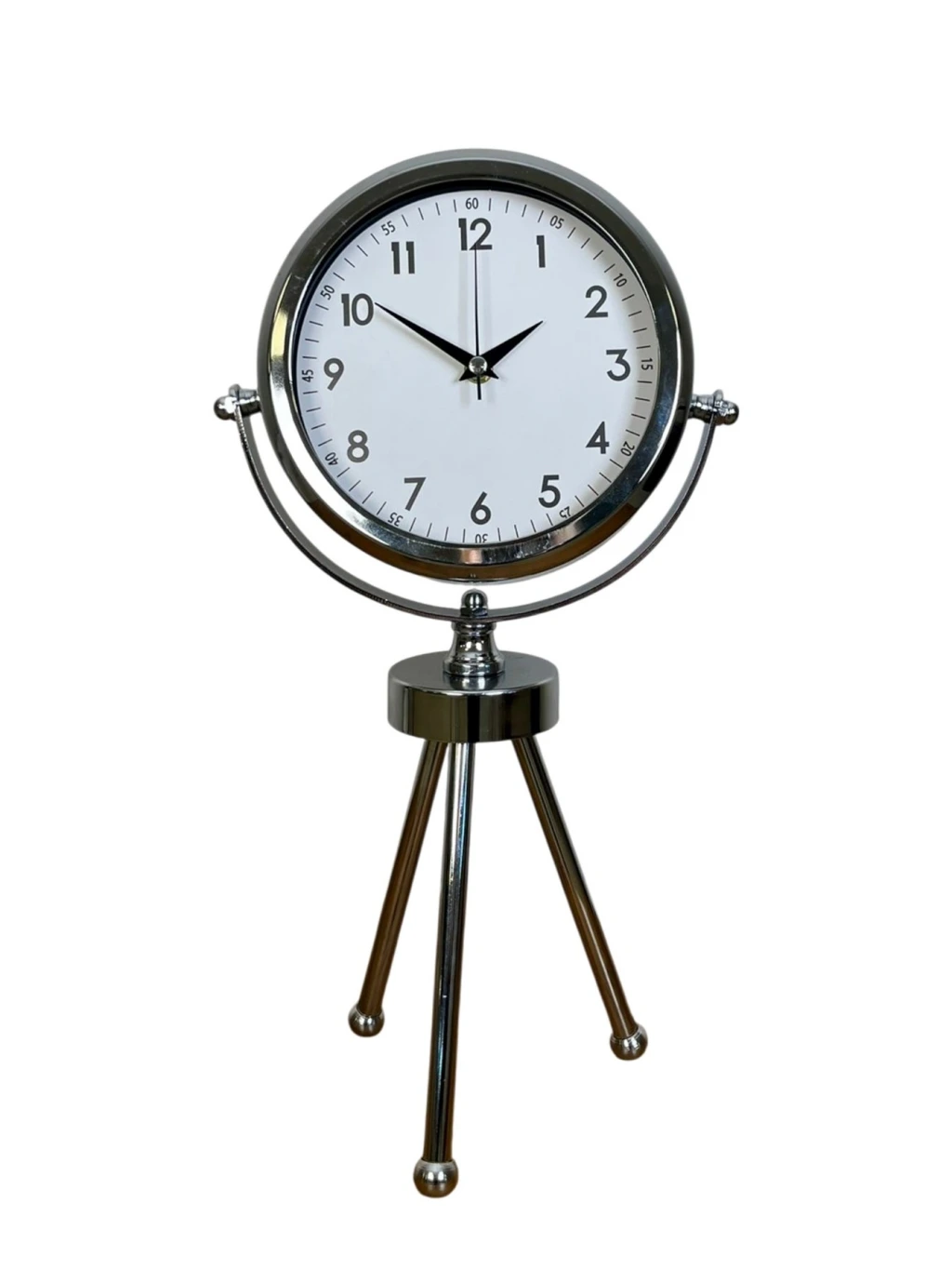 Krom Modern Classic Üç Ayaklı Metal Masa Saati