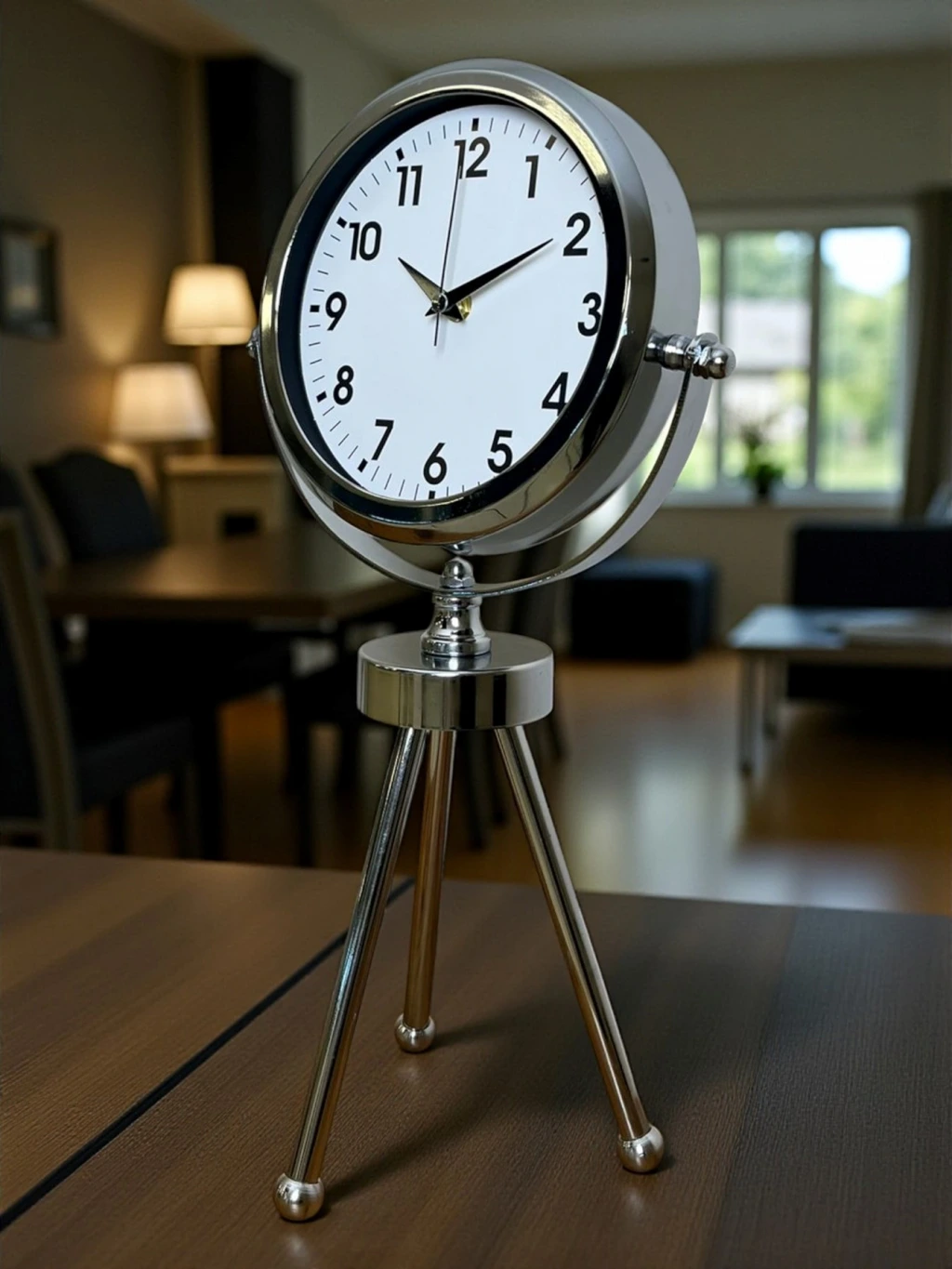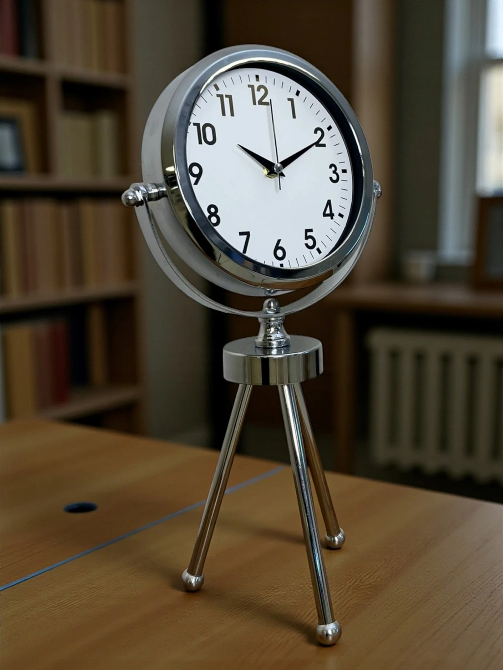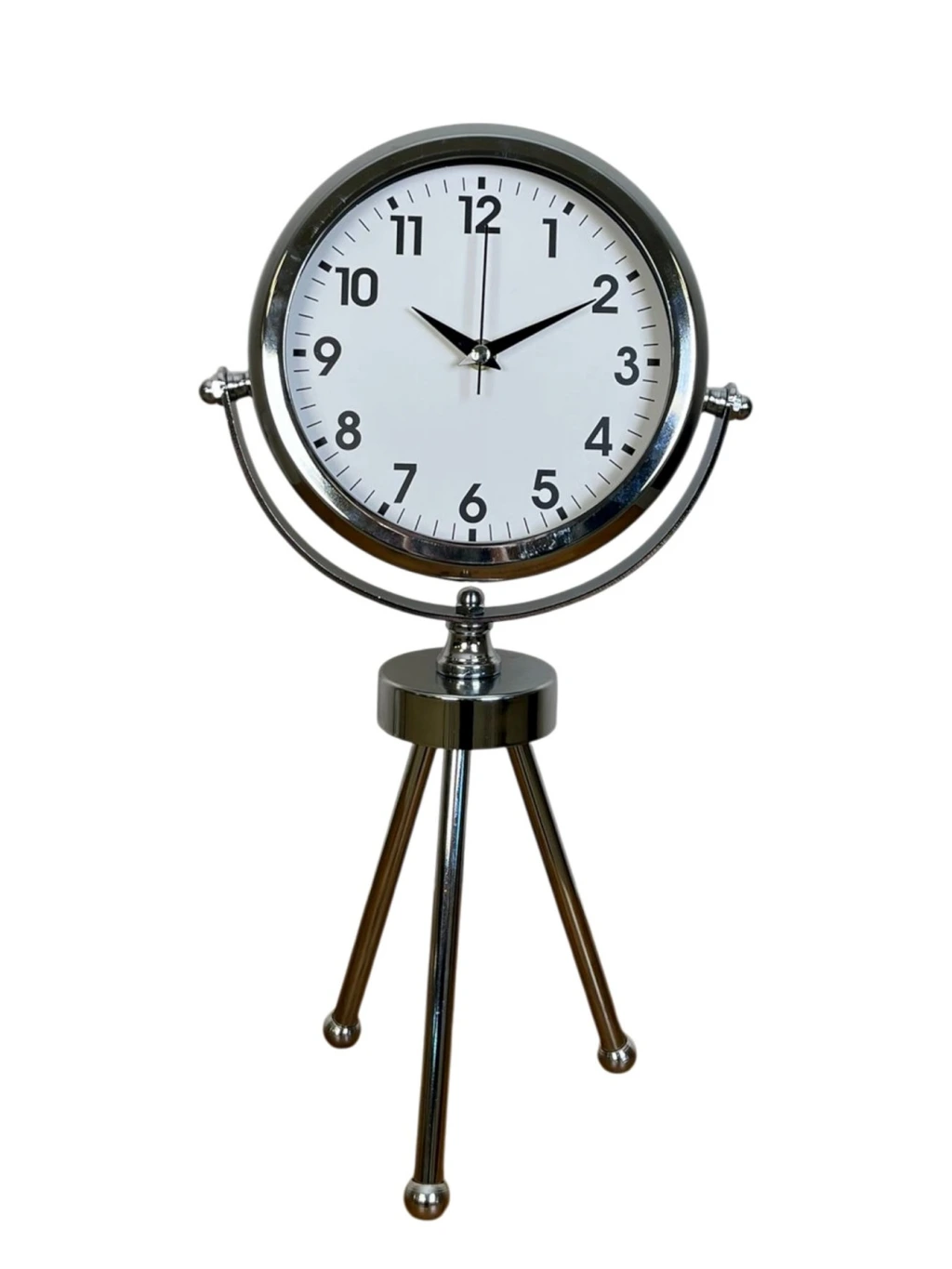 Krom Zarif & Şık Üç Ayaklı Metal Masa Saati