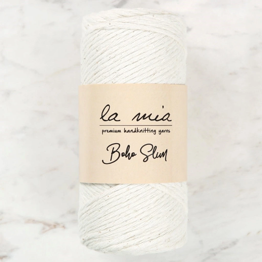 La Mia Boho Slim Tek Büküm Makrome İpi Makrome tığ veya şiş kullanmadan elle birbiri arasından geçirilen ipliklerden oluşan bir sanattır. La Mia Boho Slim makrome ipliği 3 mm kalınlığında ve 29 kattır. Yumuşak aynı zamanda da dayanıklıdır. Tarakla kolayca taranabilir.Kullanım Alanı: duvar süsü, kapı süsü, çanta, abajur, runner, perde, anahtarlık vb. yapımında kullanılabilir.