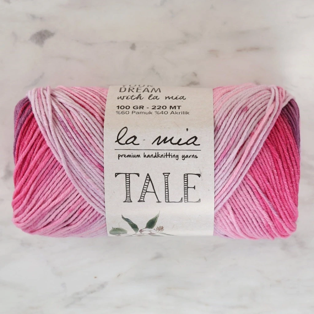 La Mia Markası'na ait yepyeni ürün TALE ile hayalini yarat.Geçişli renk tonlarının hakim olduğu bu seri ile havanız değişecek. Yumuşak ve kolay tüylenmeyen yapısı, güzel renk tonları ile örgüleriniz artık daha gösterişli. Tüm örgü modellerinizde güvenle tercih edebilirsiniz.