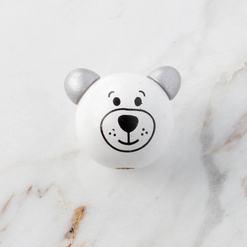 Loren 1 Adet Kulağı Gri Ayı Figürlü Ahşap Boncuk