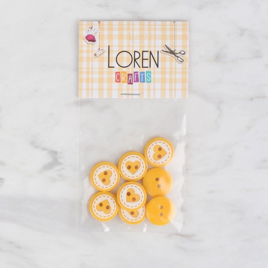 Loren Crafts 8 li Sarı Kalp Düğme - 480