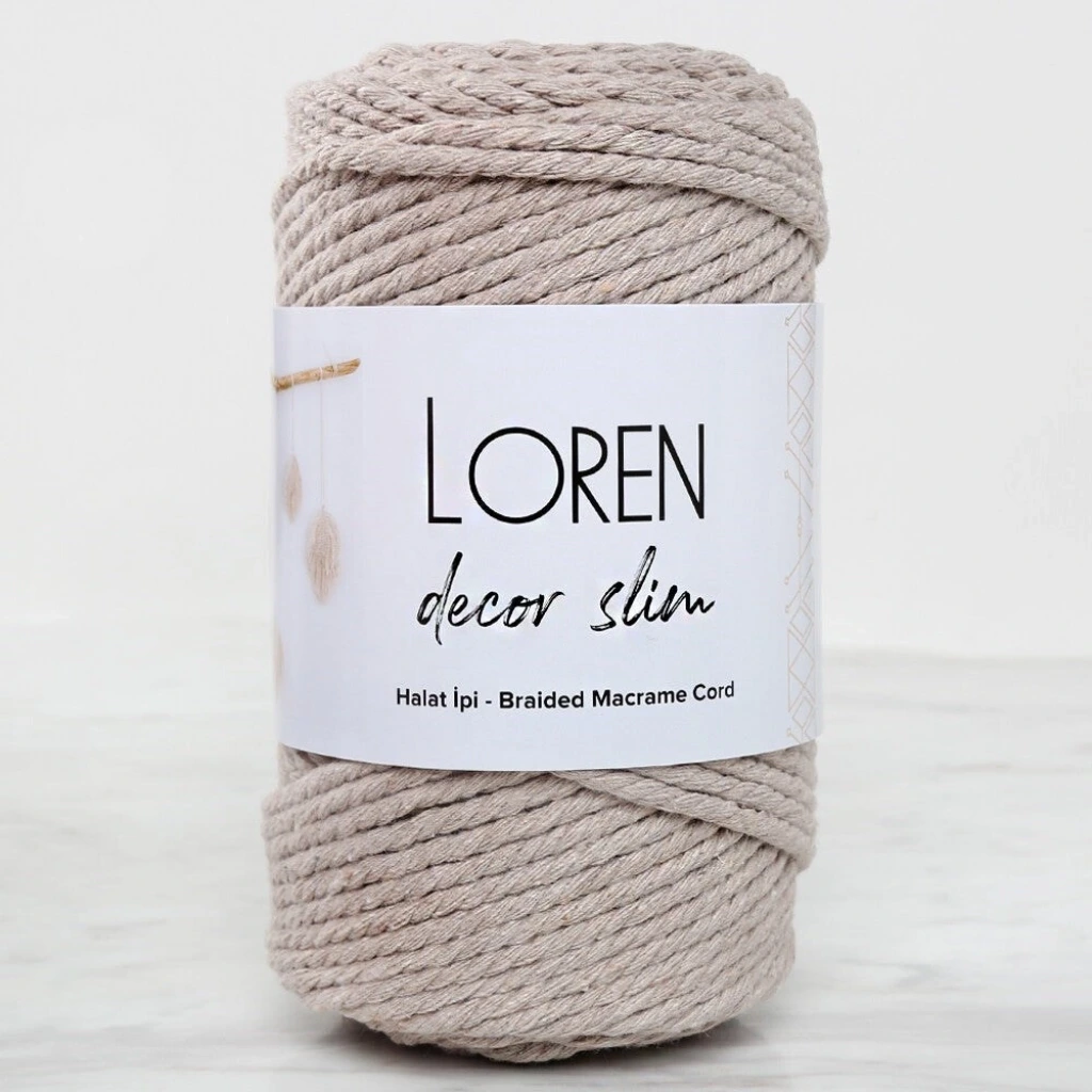 Makrome tığ veya şiş kullanmadan elle birbiri arasından geçirilen ipliklerden oluşan bir sanattır. Loren Decor Slim halat ipliği 2 mm kalınlığındadır. Yumuşak aynı zamanda da dayanıklıdır.