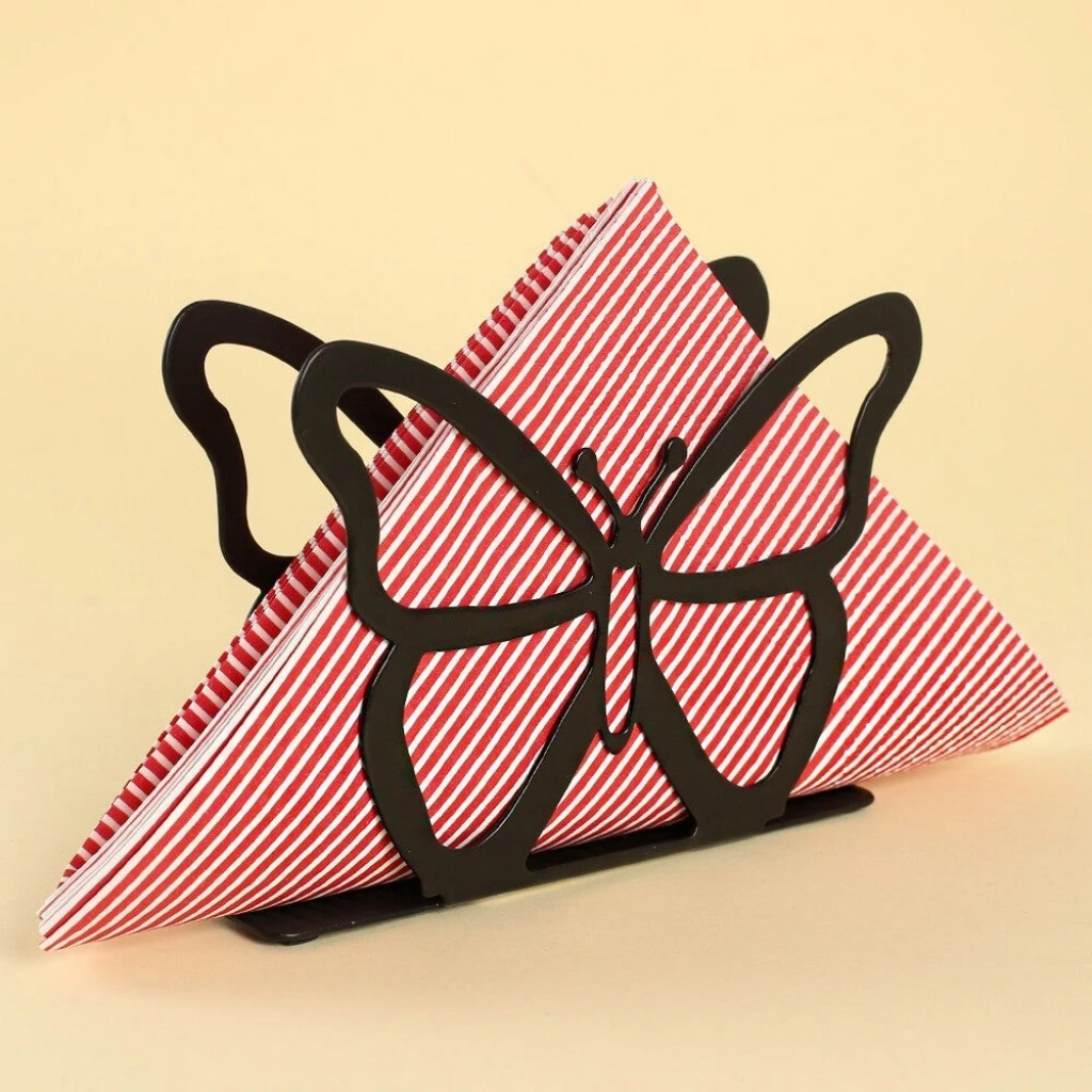 Loren Home Kelebek Siyah Metal Peçetelik
