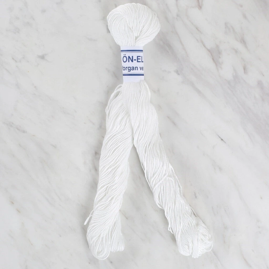 Yumuşak ve dayanıklı beyaz Loren yorgan ipi. Örgü, el işi ve hobi projeleriniz için ideal.