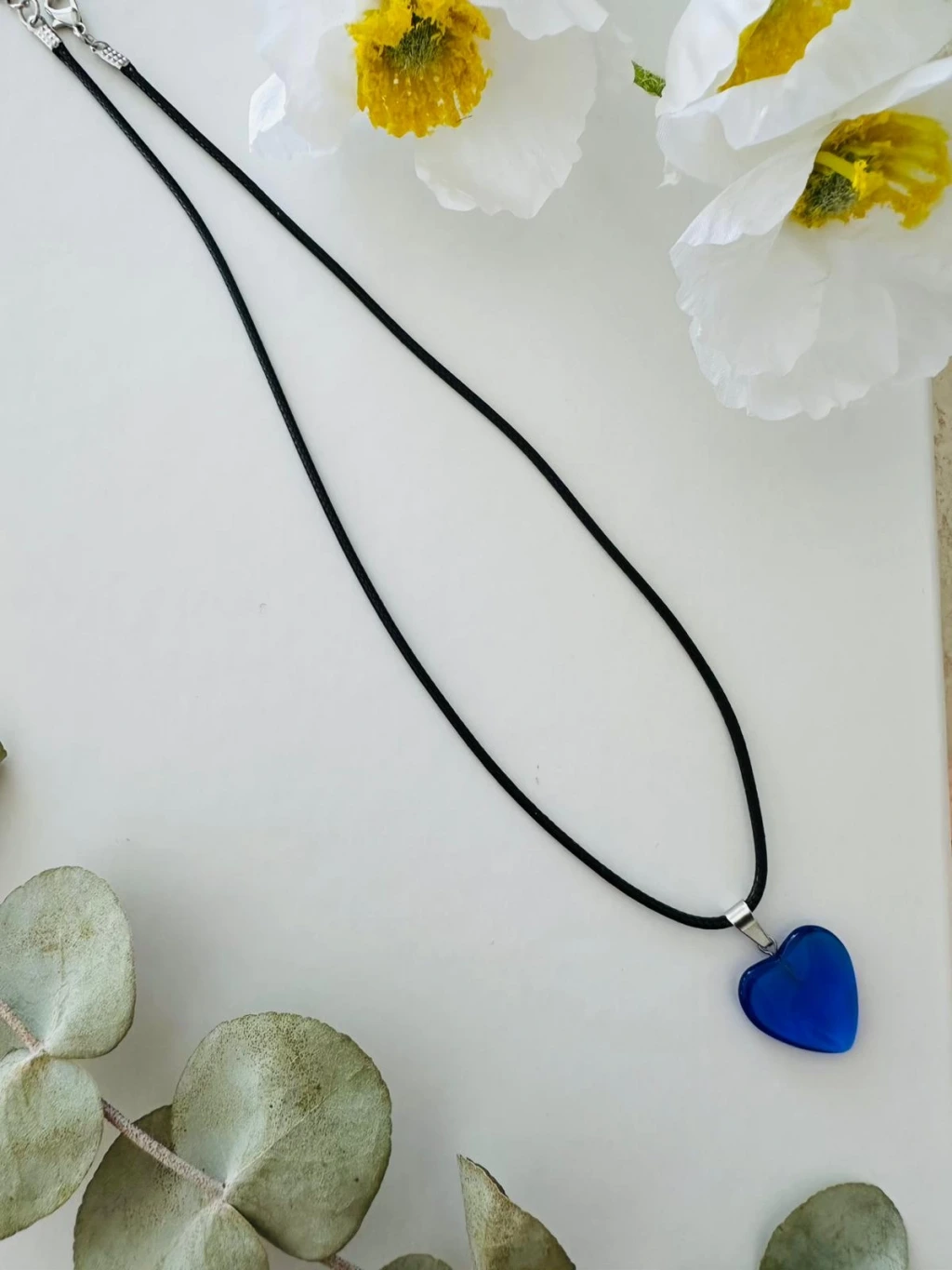 Mavi Kalp Kolye – Siyah İpli El Yapımı Tasarım