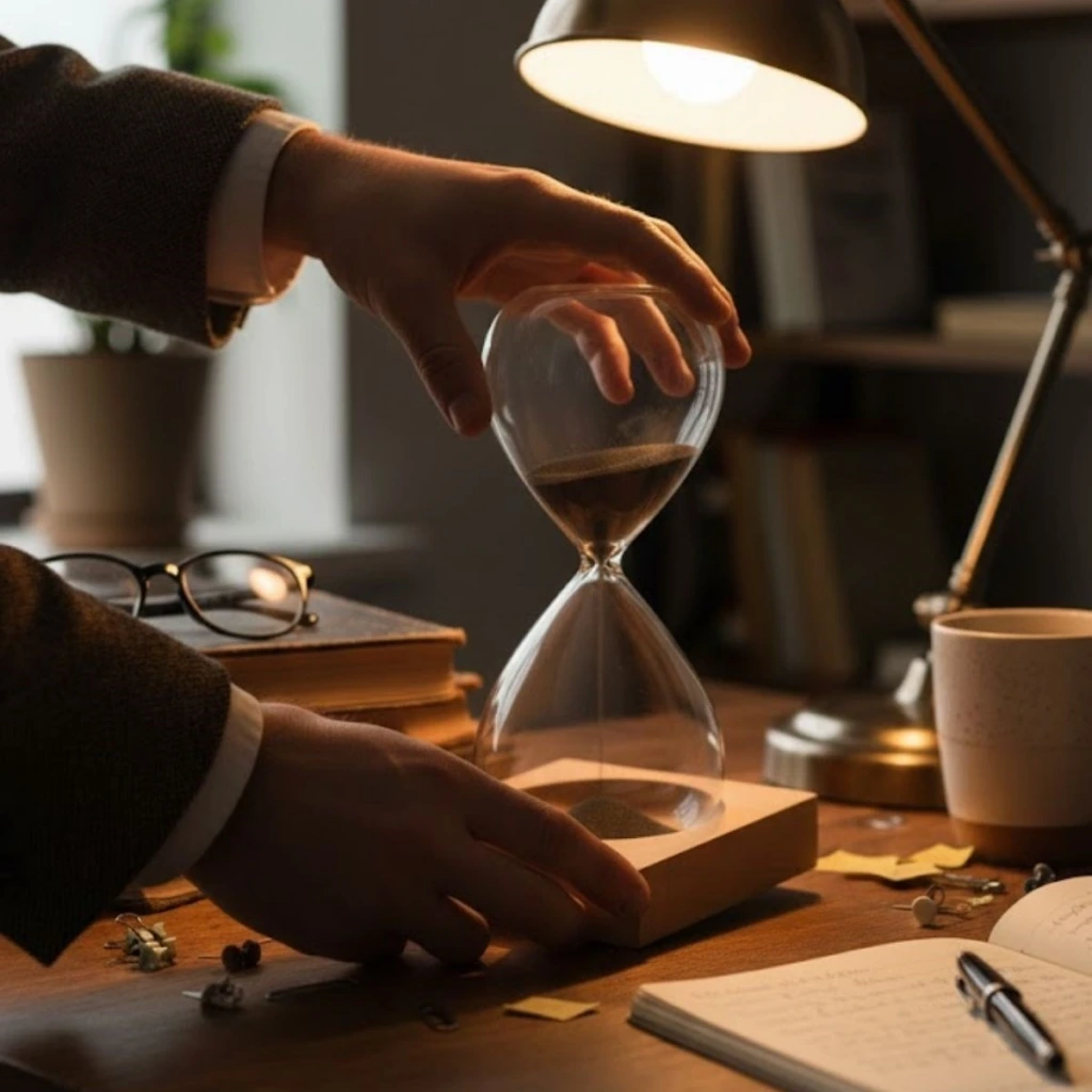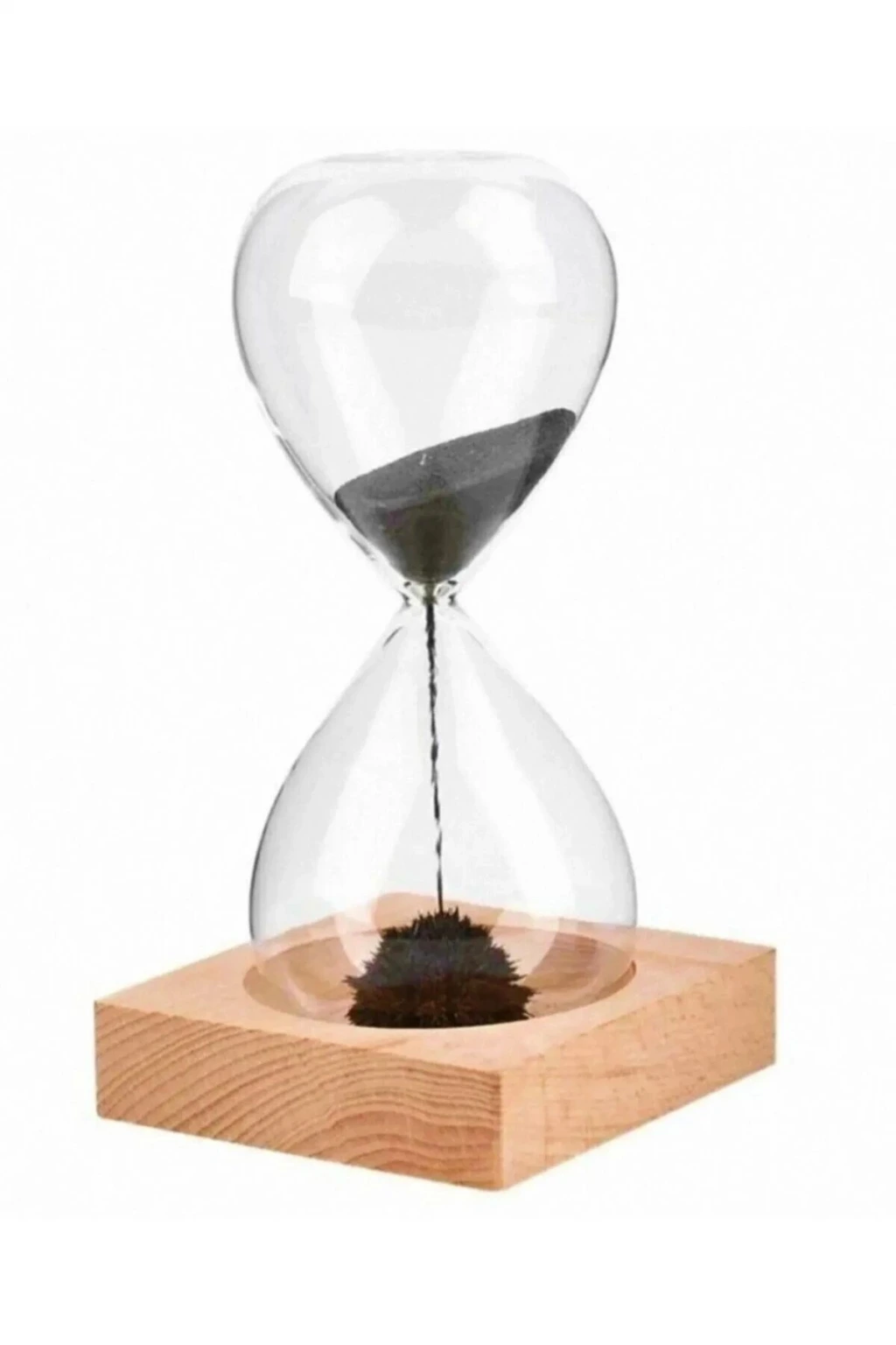 mıknatıslı cam kum saati; ofis hediyesi, masaüstü aksesuarı ve dekoratif obje arayanlar için zarif ve dikkat çekici bir tercihtir.