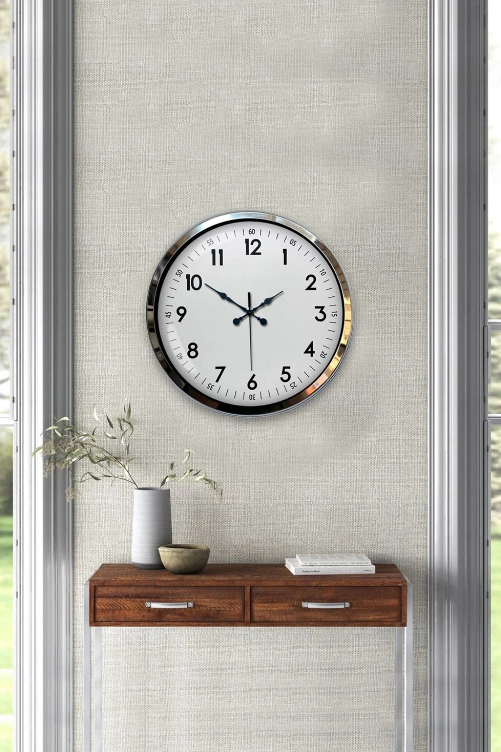Şık ve modern tasarımıyla dikkat çeken 40 cm krom kaplamalı duvar saatimiz, sessiz akar saniye mekanizmasıyla konforlu bir kullanım sunar. Gerçek cam koruma paneli sayesinde uzun ömürlü ve dayanıklıdır. Estetik görünümüyle hem ev hem de iş yerleri için ideal bir dekoratif üründür.