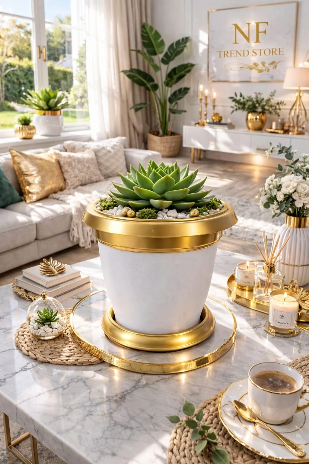 ? Gold Detaylı 1.7 Litre Dekoratif Plastik Saksı
