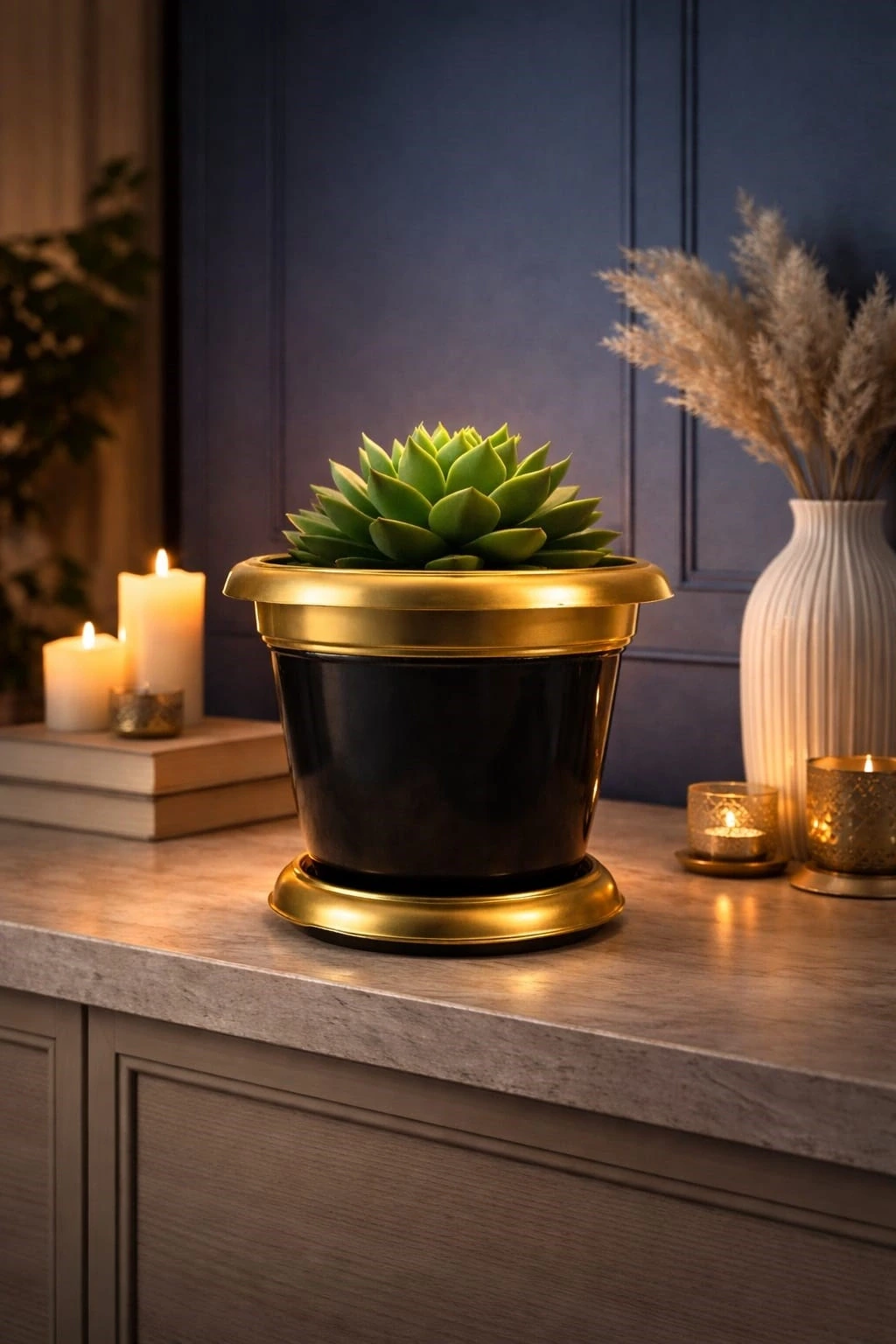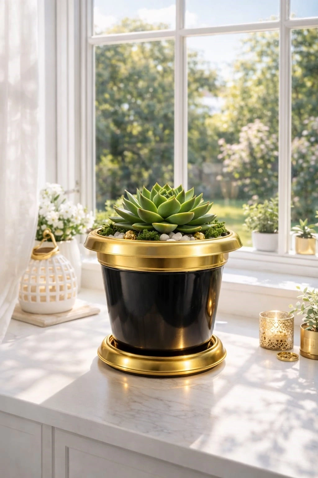 ? Gold Detaylı 1.7 Litre Dekoratif Plastik Saksı