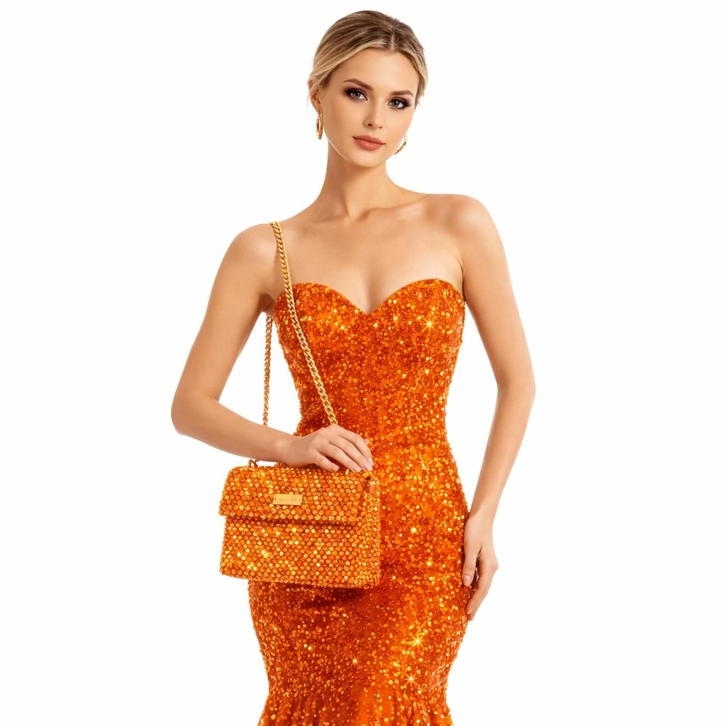 Panna Papaya, zincirli kullanım avantajı, kompakt yapısı ve yüksek işçilik seviyesiyle gece ve özel davetler için tasarlanmış lüks bir clutch modelidir.