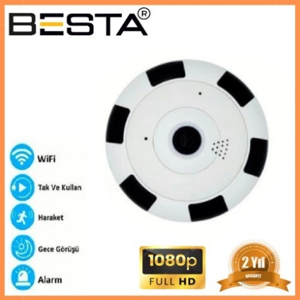 anoramik Kablosuz Kamera Gece Görüşlü 1080P Güvenlik Kamerası