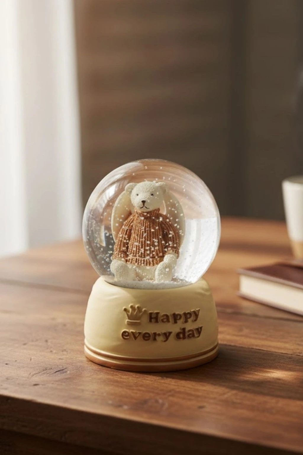 Sevimli Ayıcık Figürlü Eğlenceli Masaüstü Biblo, LED Aydınlatmalı Dekoratif Hediyelik Kar Küresi