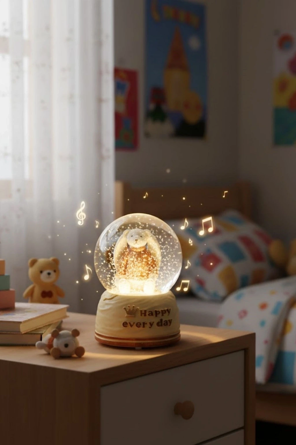 Sevimli Ayıcık Figürlü Işıklı ve Müzikli Kar Küresi, tatlı tasarımı ve etkileyici detaylarıyla bulunduğu ortama sıcak ve eğlenceli bir atmosfer katar. Küre içerisinde yer alan sevimli ayıcık figürü, dönen kar taneleriyle birlikte görsel bir şölen sunarken LED aydınlatması sayesinde loş ortamlarda da dikkat çekici bir dekoratif obje haline gelir.