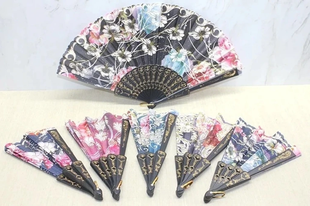 Plastik Çiçek Desenli Yelpaze