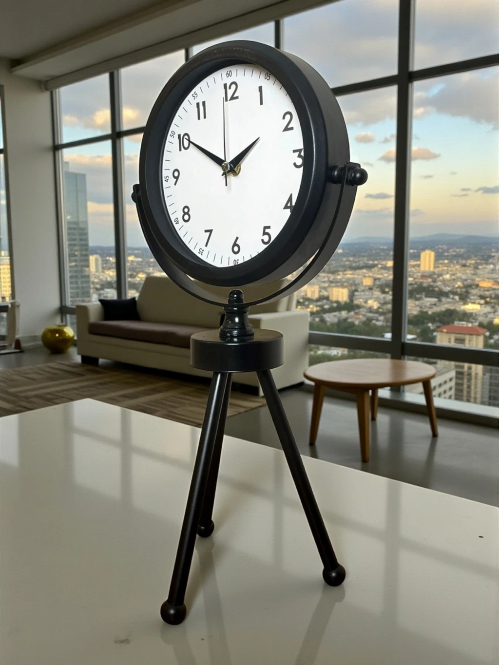 • Tasarım: Modern, minimal üç ayaklı masa / konsol saati