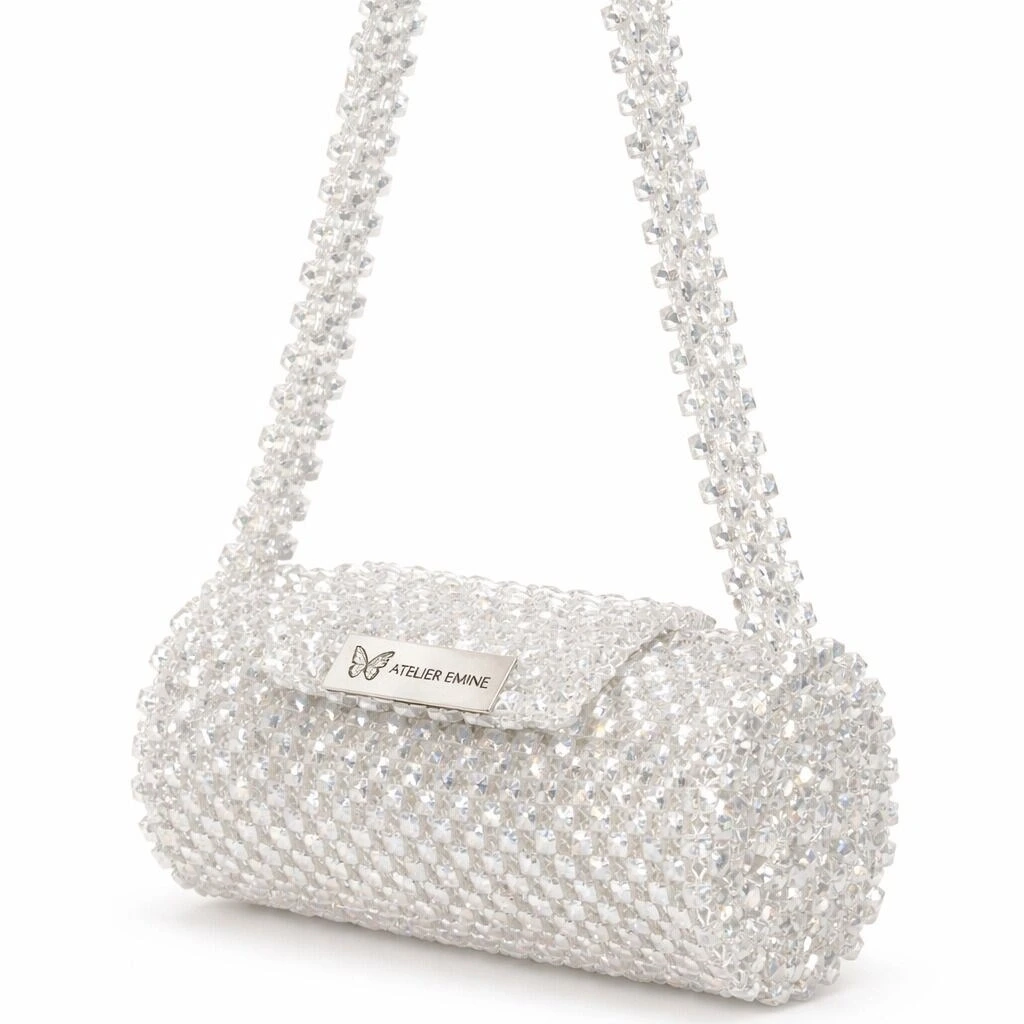 Atelier Emine’in Crystal Gelato Couture serisine ait Ricotta Snow, 8 mm optik sınıfı kristal boncukların yüksek dayanımlı misina ile örülmesiyle tamamen el işçiliğiyle üretilmiş, zamansız ve rafine bir mini çanta tasarımıdır.