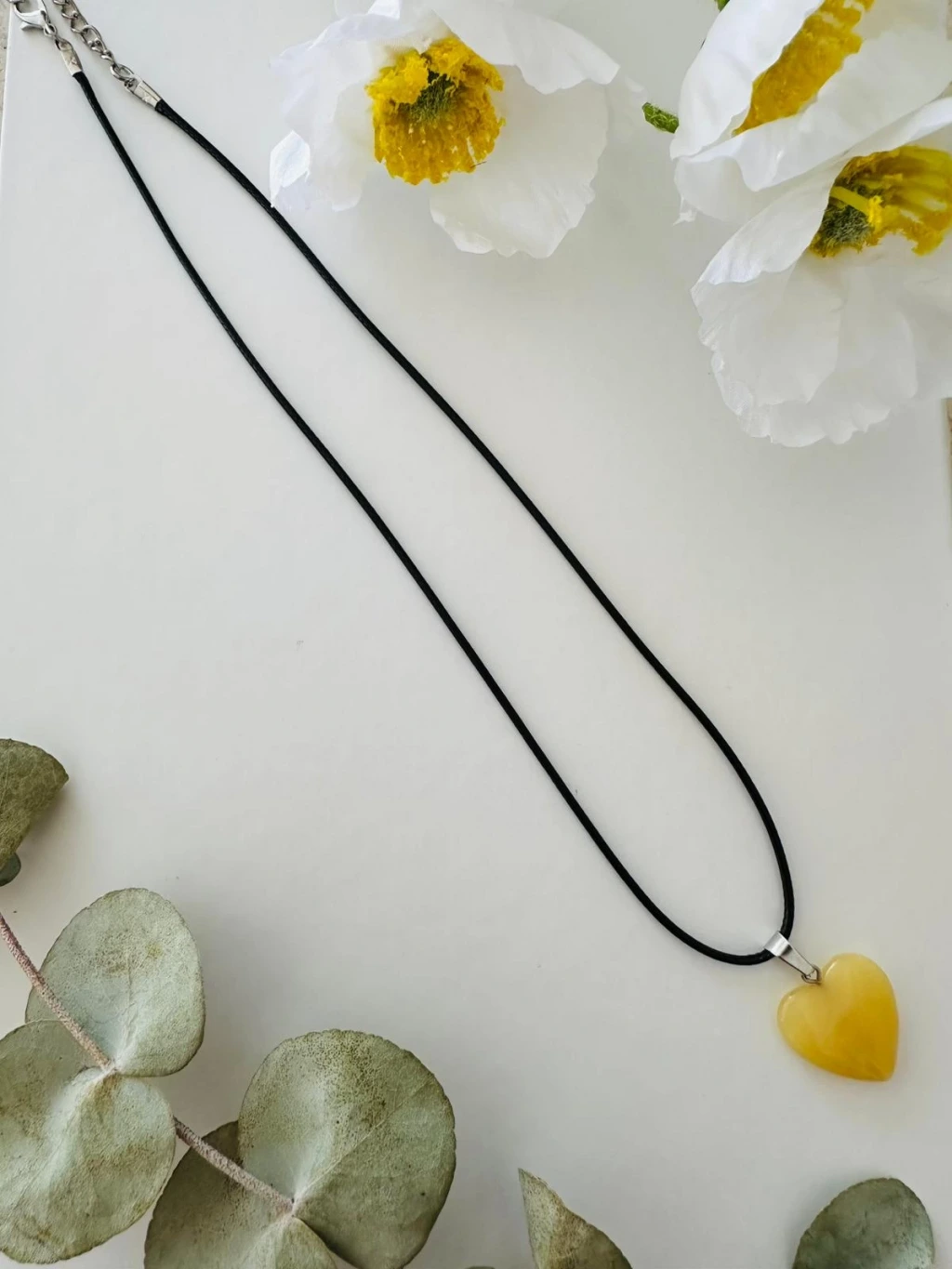 Sarı Kalp Kolye – Siyah İpli El Yapımı Tasarım