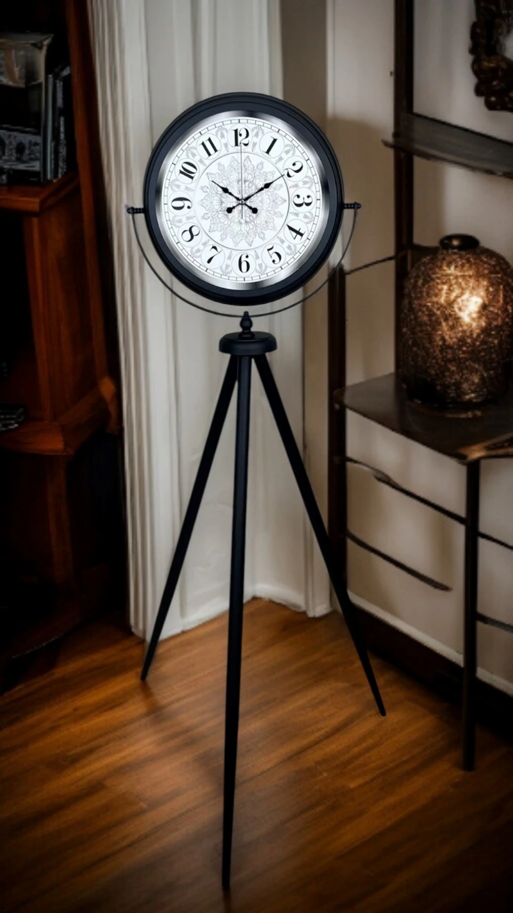Hem dekoratif hem de fonksiyonel olan bu ayaklı saat, yaşam alanınıza karakter, stil ve prestij kazandırır.