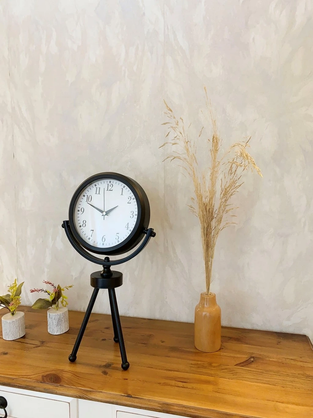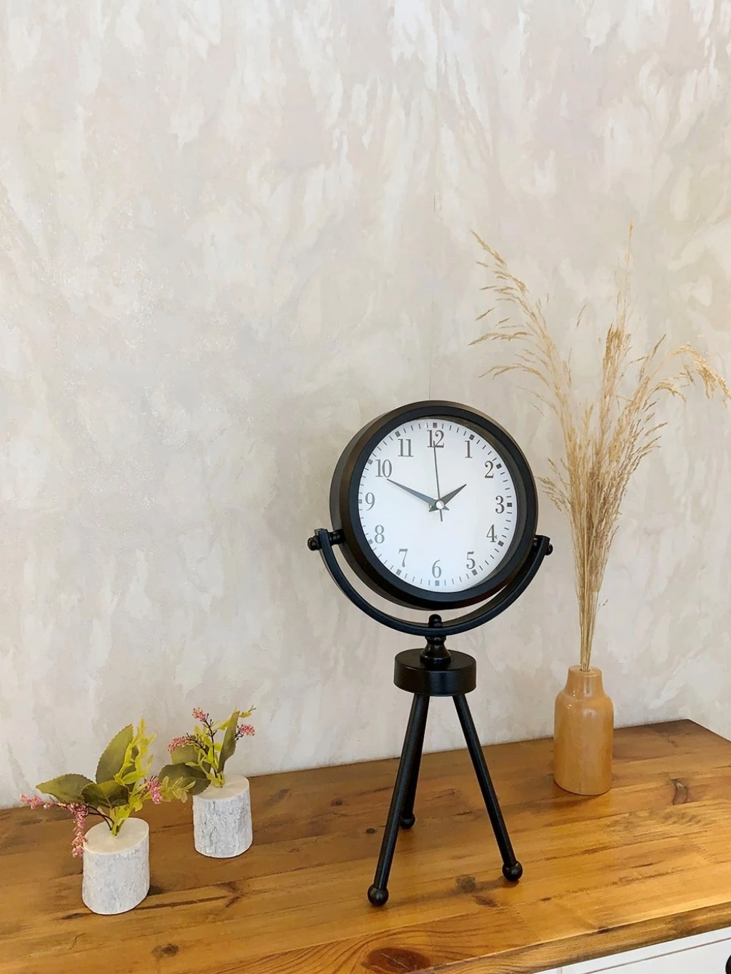 Siyah Metal Mini Tripod Masa Saati 45×26 cm