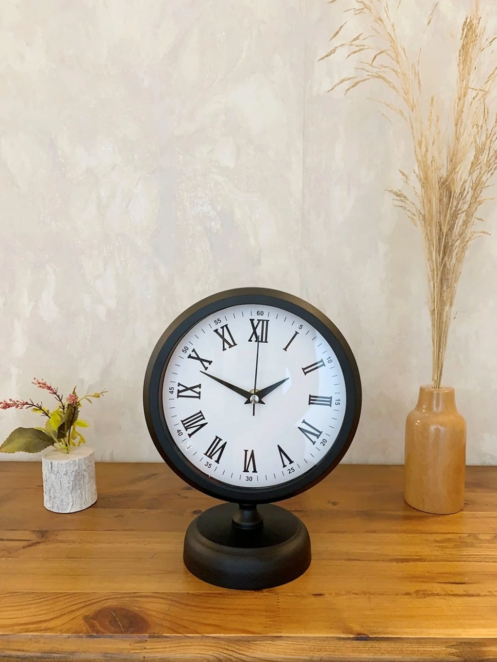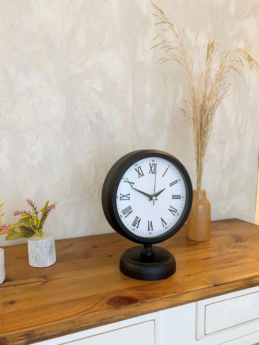 Şık ve modern tasarımıyla dikkat çeken Siyah masa saatimiz, sessiz akar saniye mekanizmasıyla konforlu bir kullanım sunar. Gerçek cam koruma paneli sayesinde uzun ömürlü ve dayanıklıdır. Estetik görünümüyle hem ev hem de iş yerleri için ideal bir dekoratif üründür.