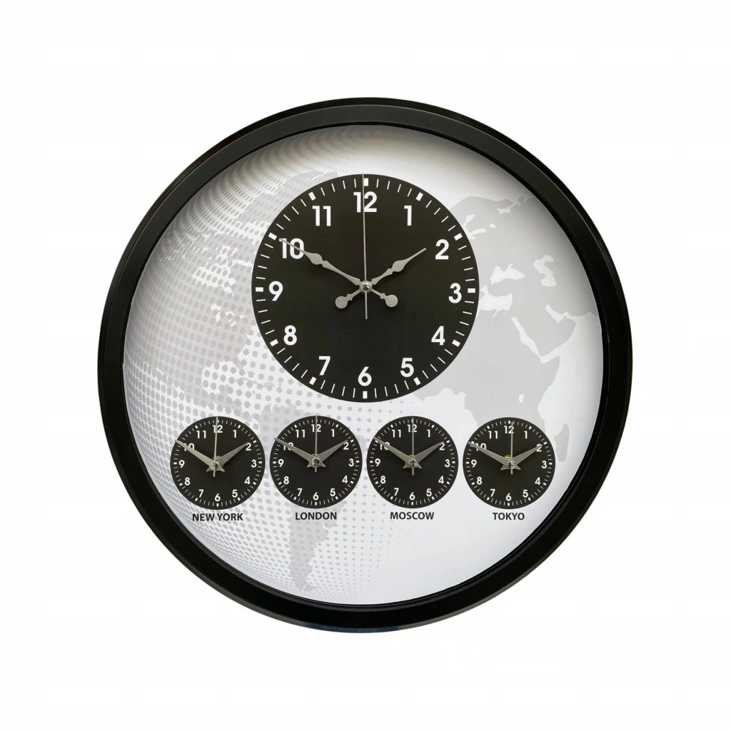 Merkezde yer alan büyük ana saat net ve kolay okunabilir yapıya sahiptir. Alt bölümde bulunan New York – London – Moscow – Tokyo zaman göstergeleri ise uluslararası bağlantıları olan işletmeler için fonksiyonel bir çözüm sunar.