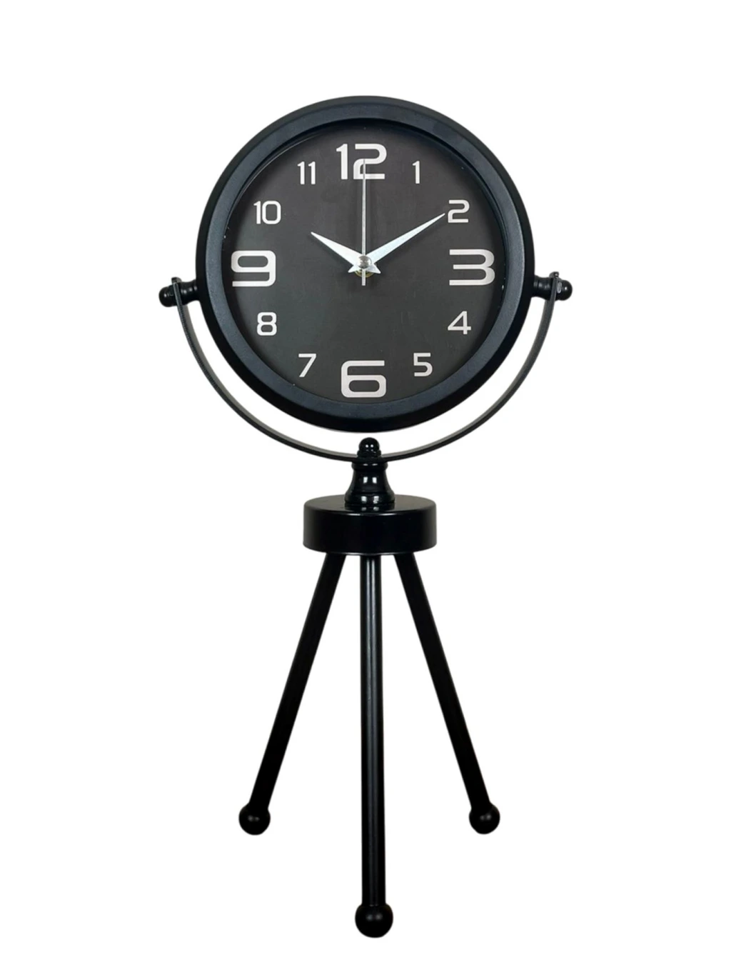 45 x 25 cm ölçülerindeki bu modern siyah üç ayaklı masa saati, minimal tasarımı ve güçlü duruşuyla her ortama şıklık katar. Gerçek cam korumalı kadranı sayesinde net görüntü ve uzun ömürlü kullanım sağlar. Tamamen metal gövdesi ve tripod ayak yapısıyla sağlam, dekoratif ve premium bir görünüm sunar. Sessiz akar saniye mekanizmasıyla ev, ofis ve çalışma alanlarında rahatsızlık vermeden kullanılabilir.